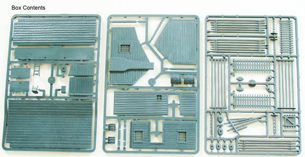 The building in this box represents a weather board North American cabin or farmhouse. It is loosely based on General Meade's headquarters during the battle of Gettysburg in 1863 and similar buildings. The style of construction means that it can be used from 1750 to at least 1900.