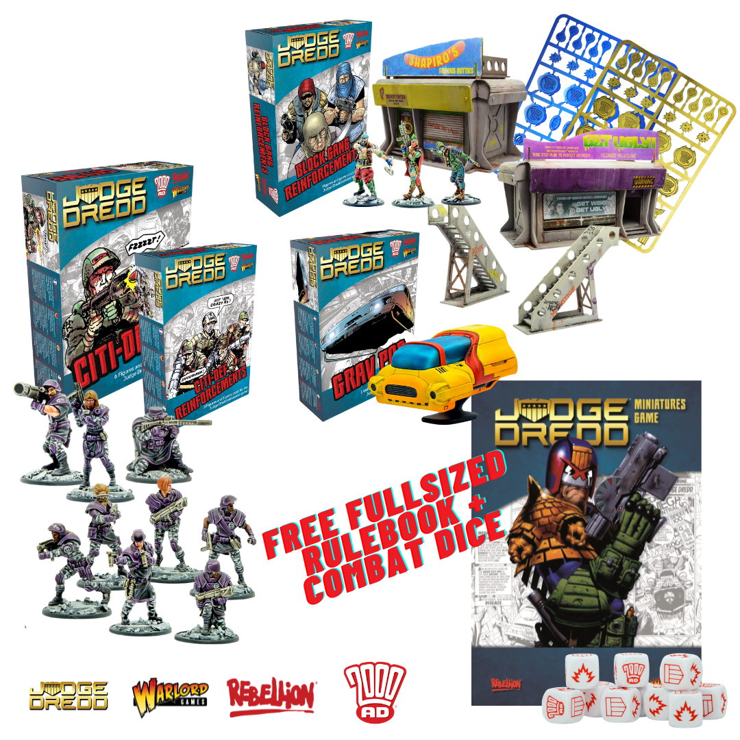 Everything you need to play the Dredd Miniatures game in this bundle: