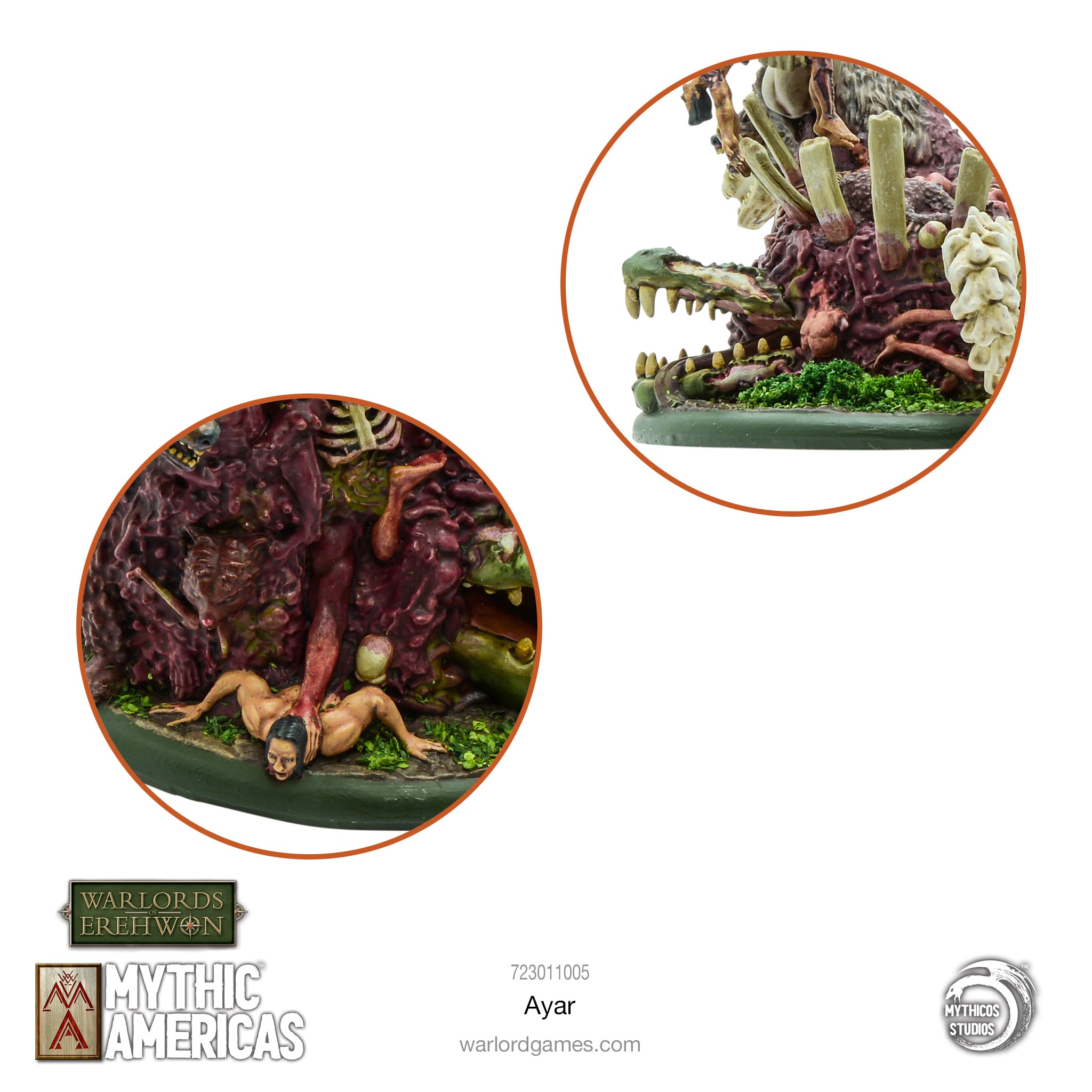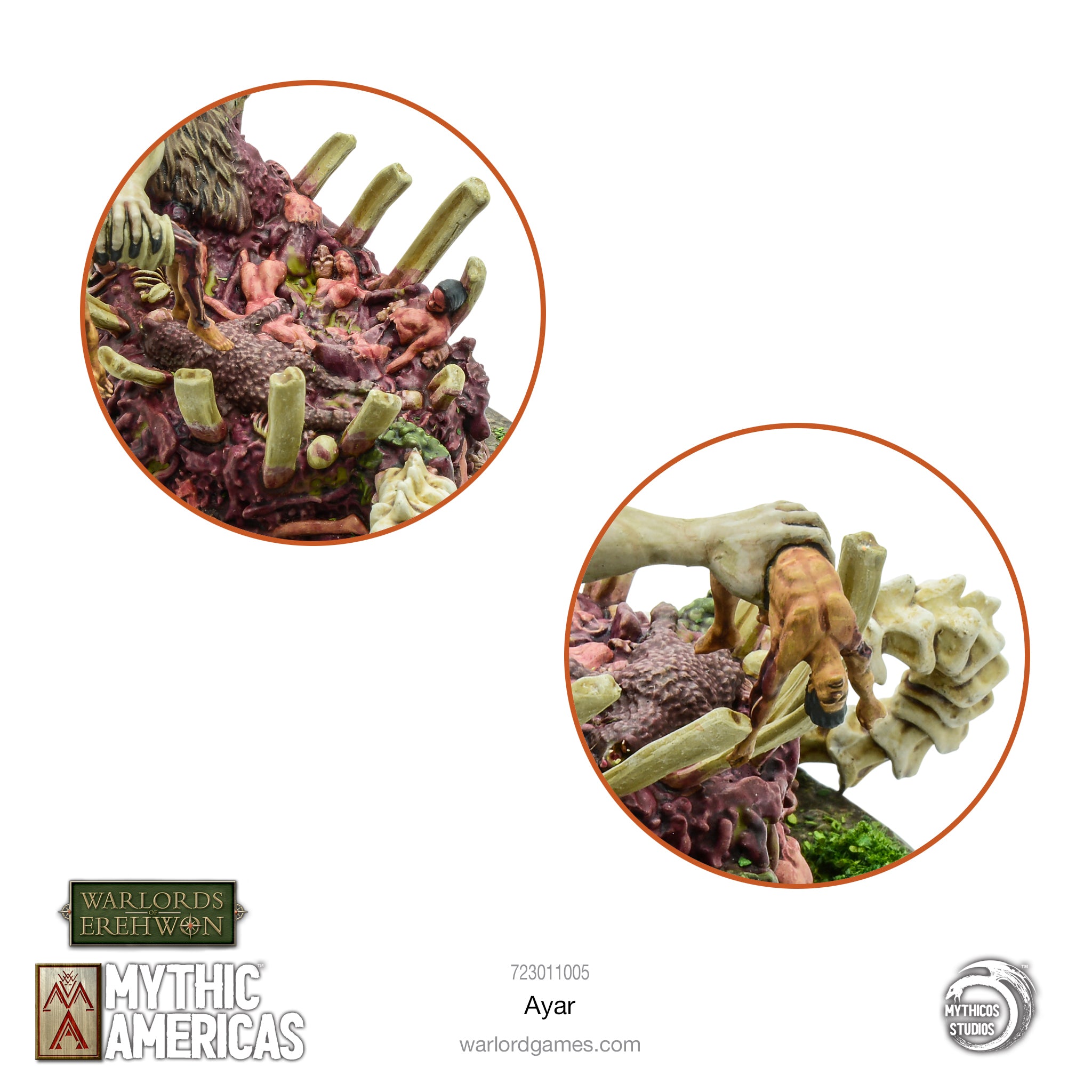 Ayar \ī-'är\– The Ayar is the ultimate tar-pit unit against standard warriors with an incredibly high resistance value. An undead monstrosity, the Ayar can threaten enemy units with its strong melee attacks and by hurling corpses as a ranged attack. The Stuck In rule makes it difficult for enemy units to escape combat with the Ayar.