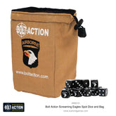 Screaming Eagles D6 and dice bagThis fantastic dice bag is ideal for drawing your order dice from during a game of Bolt Action. When not being used in game where better to store the dice. You get the Screaming Eagles dice bag and one pack of 12 Screaming Eagles...
