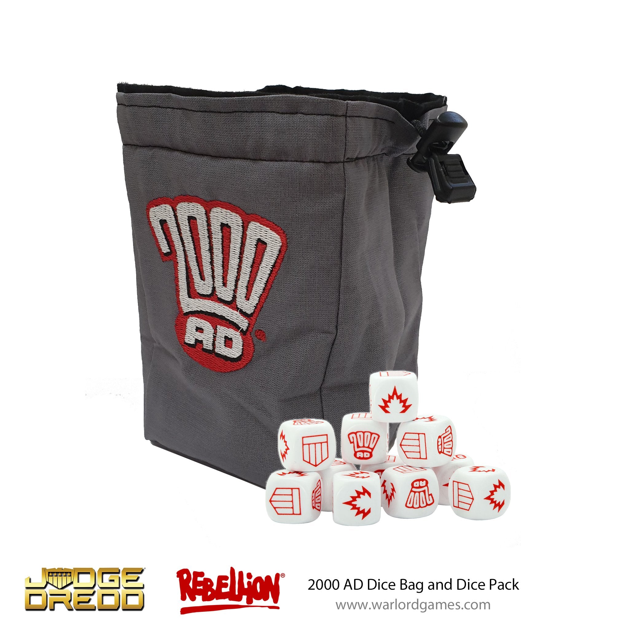 This fantastic dice bag is ideal for drawing your action chips from during a game of Judge Dredd or Strontium Dog. It's also fantastic for storing both your dice and action chips in between games!