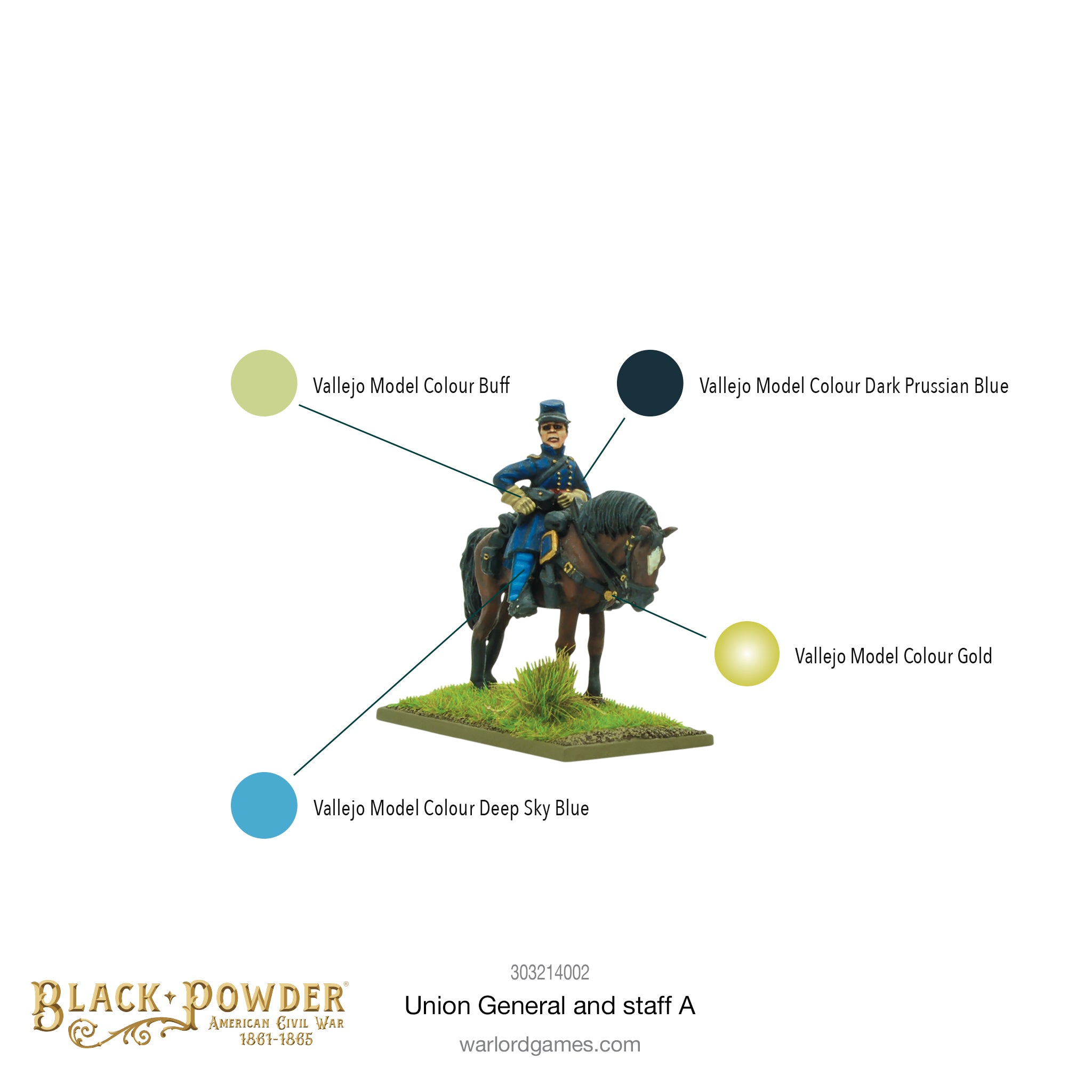 This General of the Union attended by his staff, is ready to lead his army to glory against the rebels of the Confederacy!