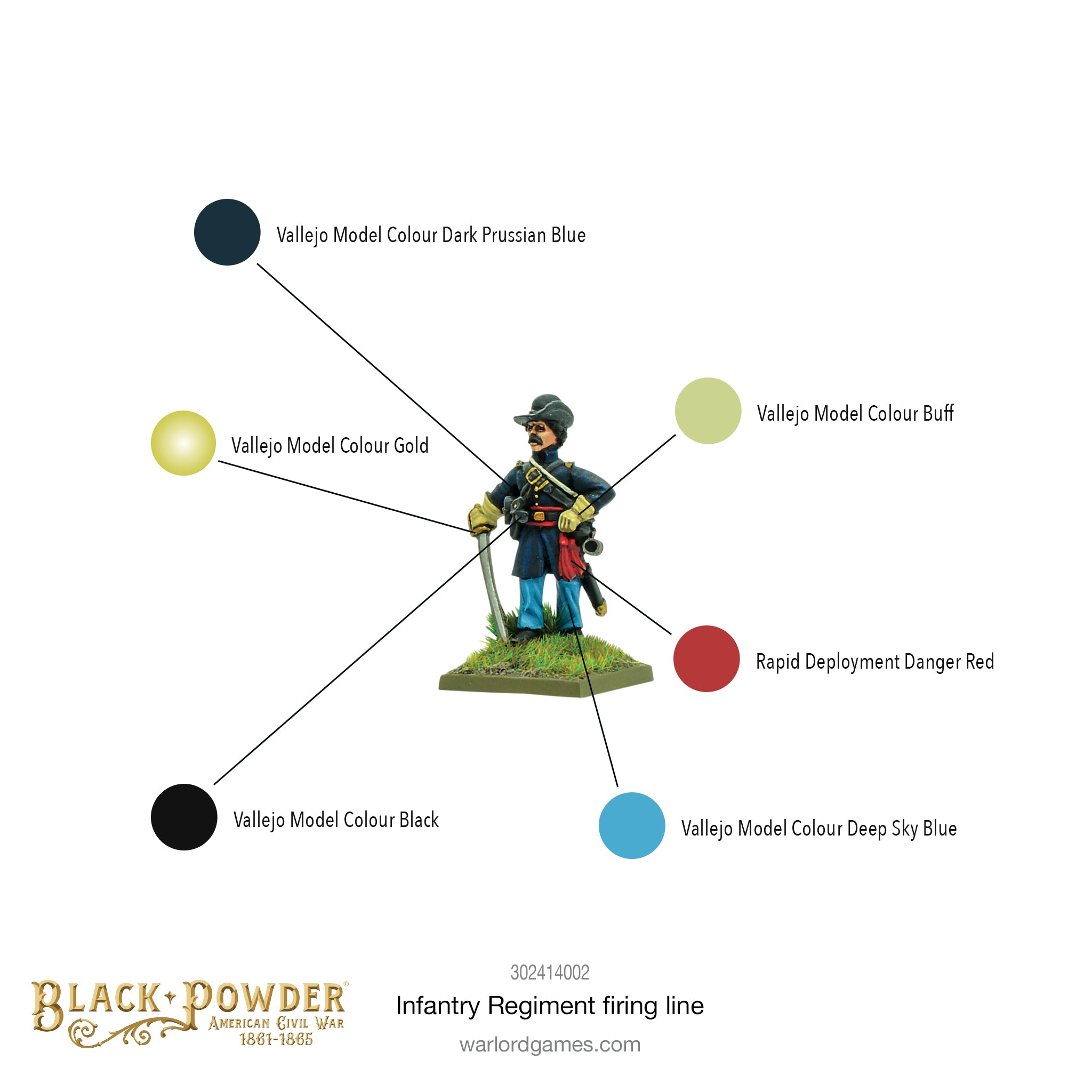 In many civil wars in history, both sides were equipped in a very similar fashion with the colour of their uniforms and the flags they fought under being the identifying features. This was no different for the forces of the Union and the Confederacy in the American Civil War, and these miniatures, presenting their arms at firing line, are equally suited to be painted as either a Union or Confederate regiment.