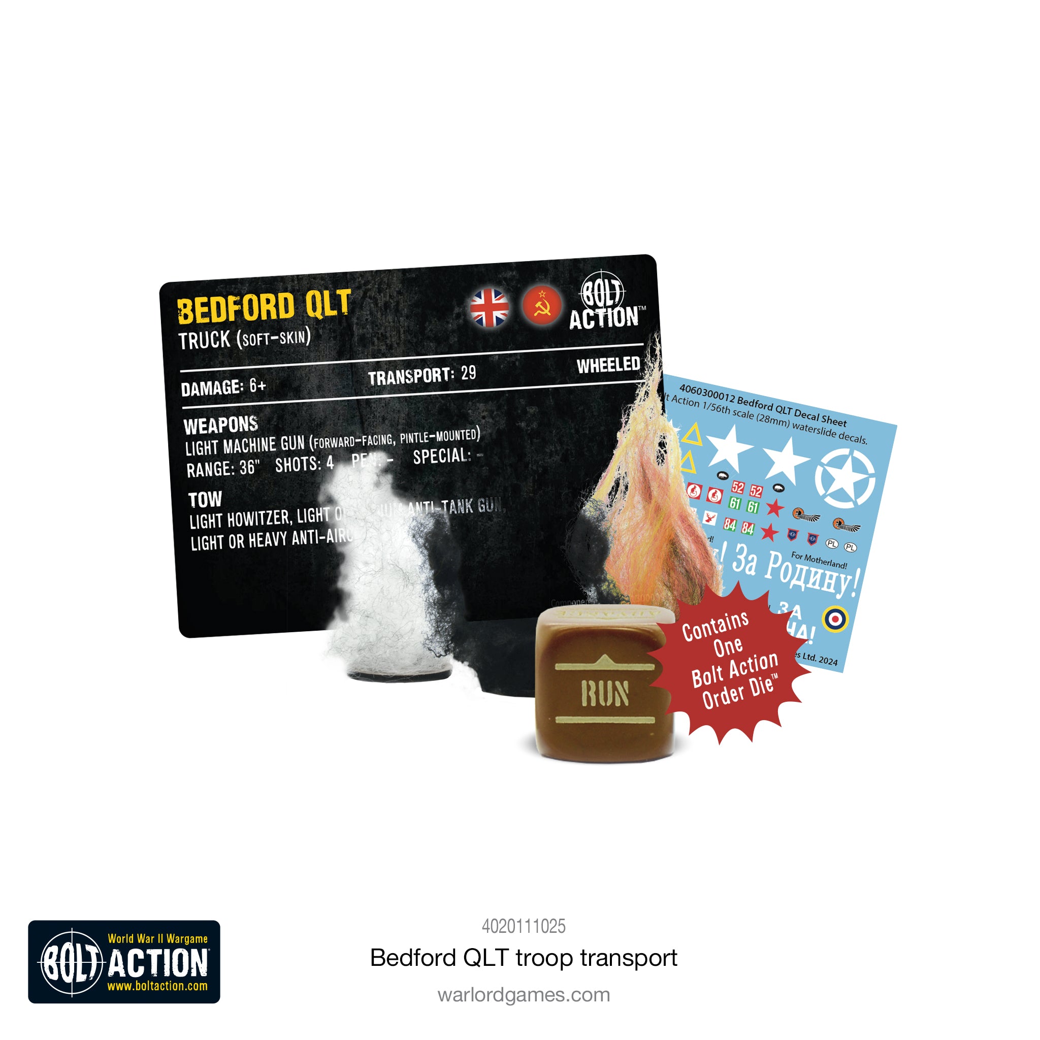 The troop transport version of the legendary Bedford QL series of lorries, the QLT was the iconic British truck of the Second World War, and these rugged, dependable vehicles would serve ably throughout the conflict. Unarmoured, with a simple canvas tilt to provide some protection from the elements, and capable of mounting a Bren gun for self-defence, these trusty workhorses would cover countless miles delivering troops and supplies wherever they were needed. No British Bolt Action collection is complete without at least one Bedford!