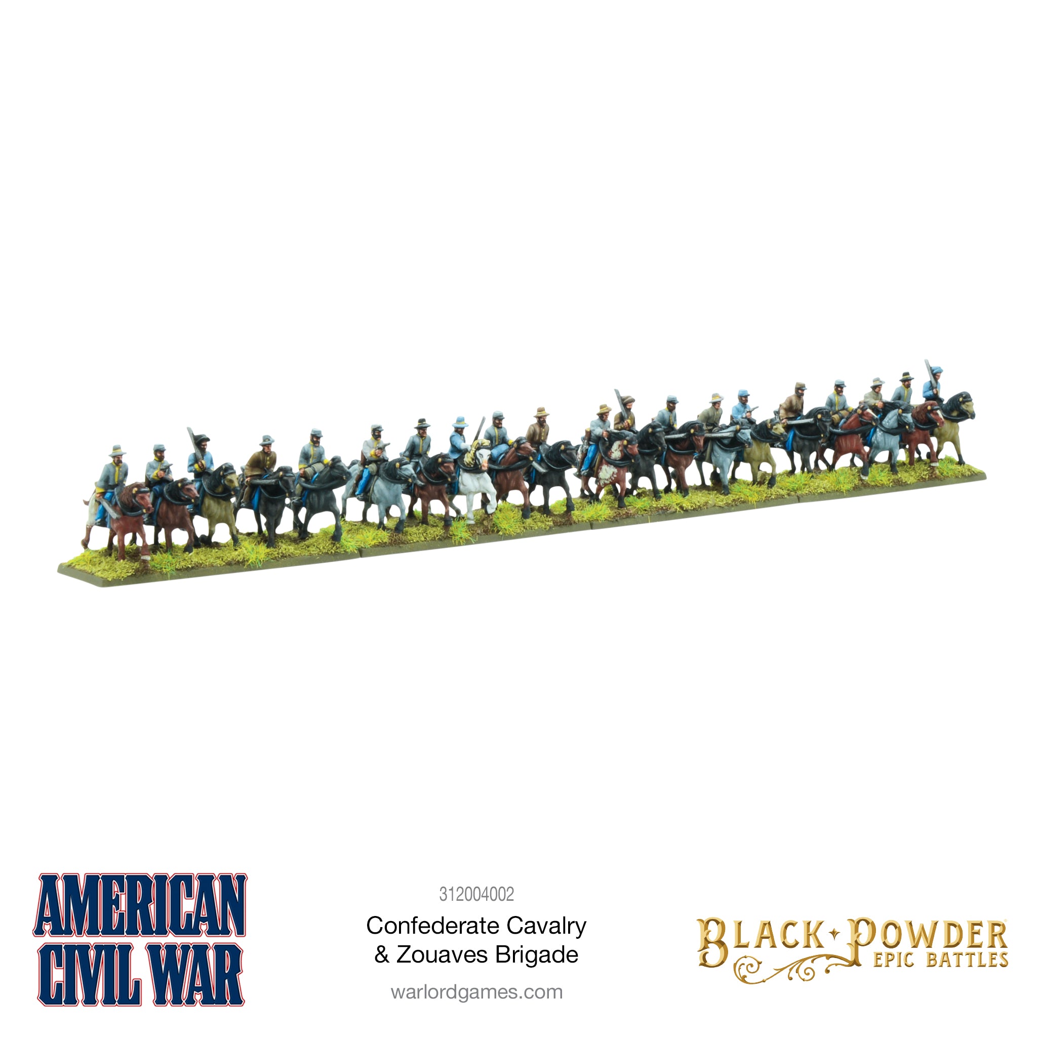 This plastic set provides enough models to field a complete Confederate brigade comprising one Zouaves regiment of 100 men, a regiment of cavalry a regiment of dismounted cavalry, and a regiment of skirmishers.