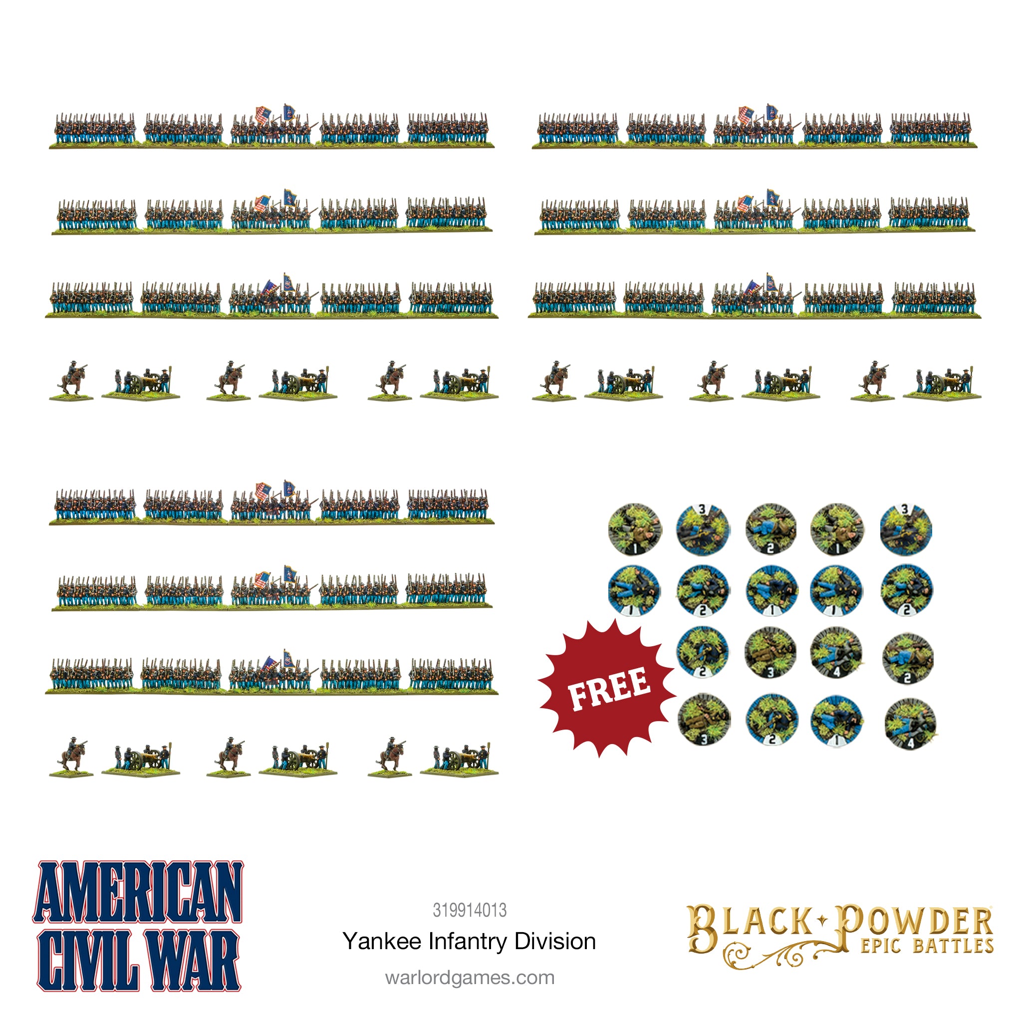 This bundle provides enough models to field a complete Union Division, comprising nine regiments of one hundred men each, nine cannons & nine mounted commanders. As an added bonus, you’ll get some Warlord ResinTM casualty markers completely free; vital to track proceedings on the Black Powder Epic Battles tabletop.