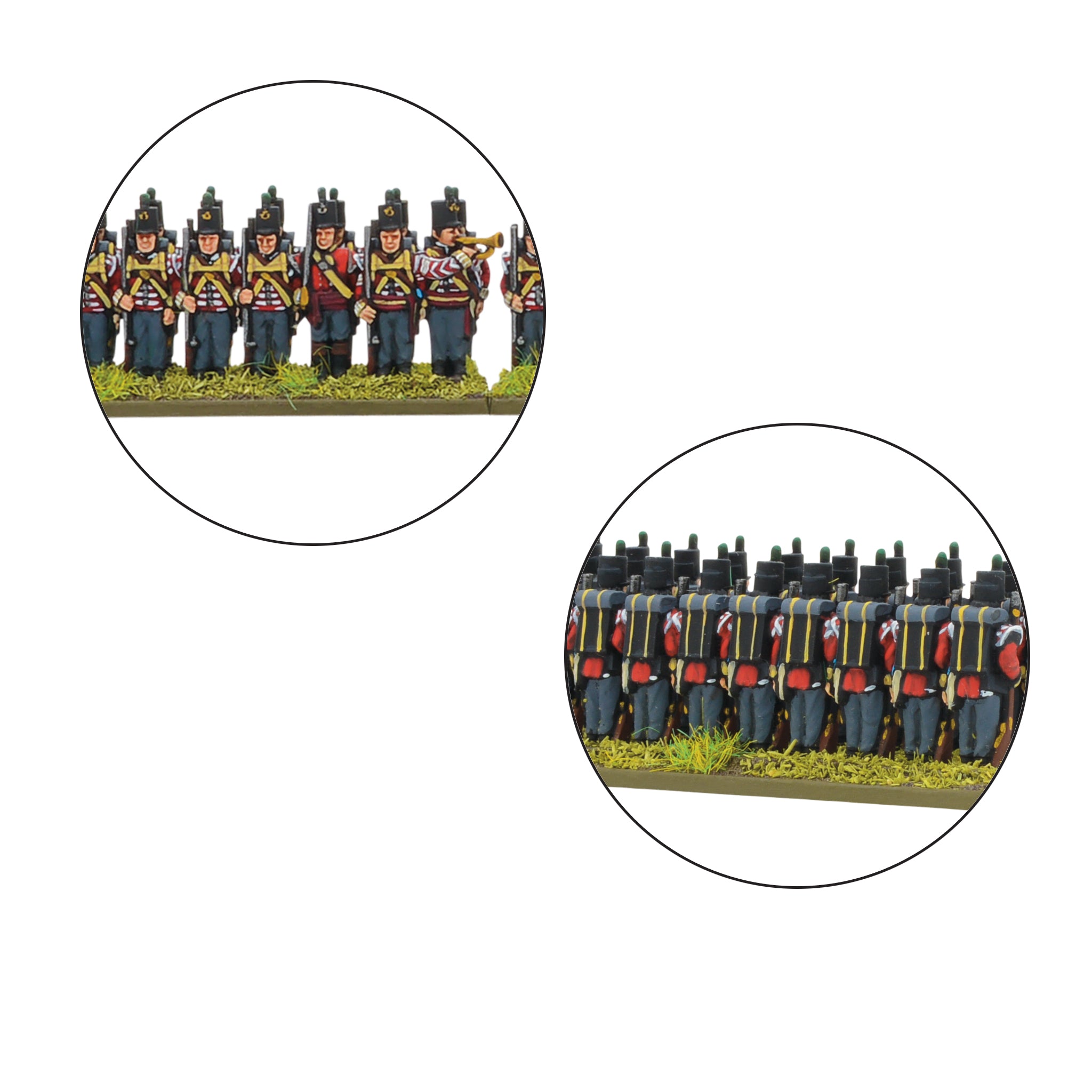 British Light Infantry battalions were trained in the ‘Shorncliffe System’, a method which encouraged small-unit tactics, initiative, and marksmanship. While still a product of the strict discipline of the era, the ‘Light Bobs’, as they were known, certainly enjoyed a much greater level of operational leeway than their Line colleagues! In battle, their role was to skirmish with their French Voltigeur opponents, and on the march they would often serve as either advance or rear guards, and if needed they could also serve in the main battleline.