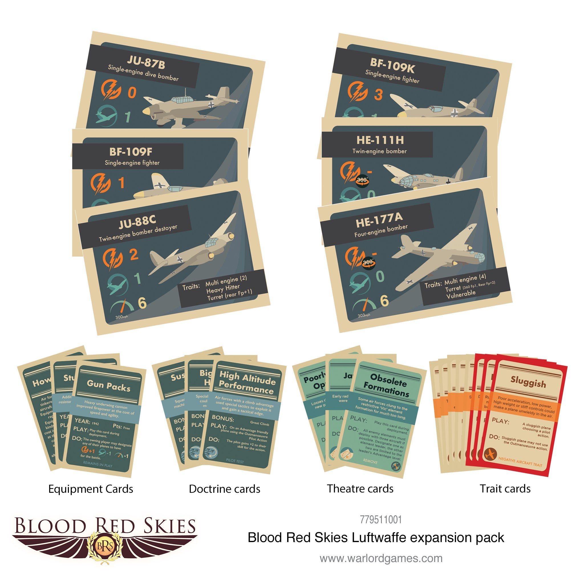 Blood Red Skies is constantly evolving with new aircraft, cards, rules and scenarios. This pack gives you a good selection of recently released German cards and profiles.