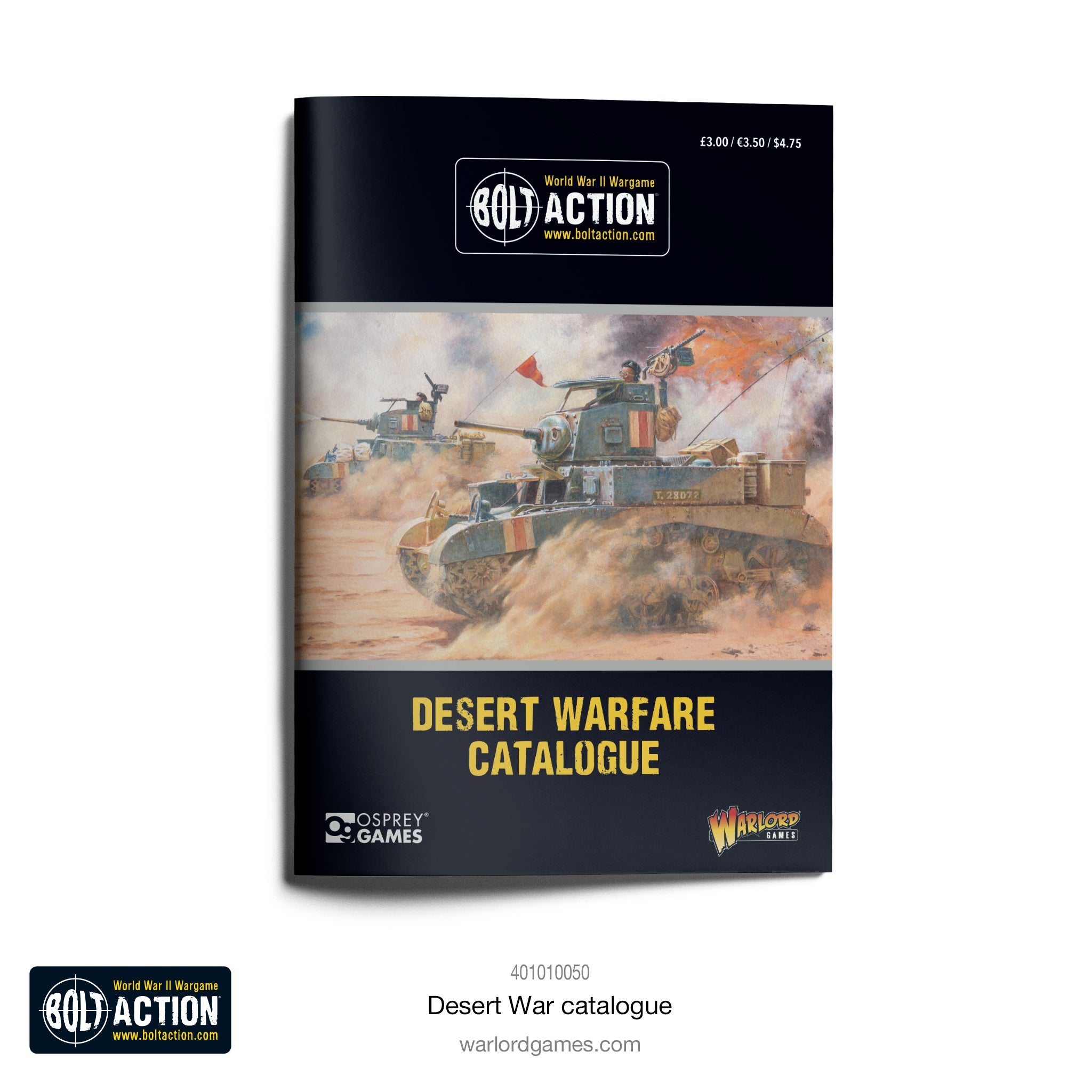 Showcasing stacks of figures, vehicles, decals, paints and accessories for the Afrika Korps, Desert Rats and Italian Army, this newly refreshed booklet is the ideal way to catalogue your collection, and to plan and build Bolt Action armies ready to fight in the Western Desert!