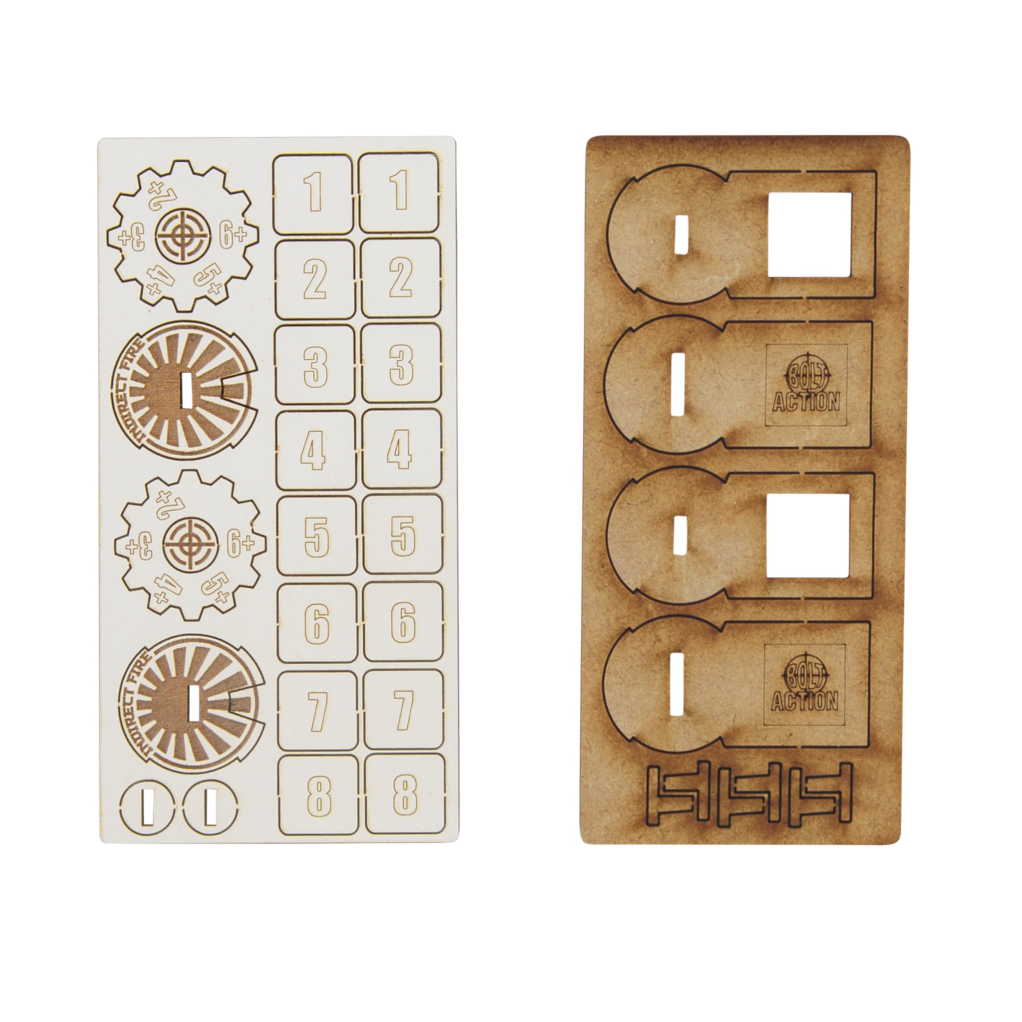 With indirect fire more prevalent than ever on the Bolt Action tabletop, you’ll want to make keep track of which of your weapons are ranging in on the enemy. These markers ensure you know who’s shooting at whom, and what they need to hit next turn, eliminating confusion and letting you mark your targets with confidence.