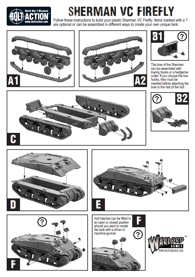 This set includes a troop of 2 Sherman V and 1 Sherman Vc 'Firefly' plastic tanks, ideal for Armoured Platoons in games of Bolt Action. The Sherman V's have a medium anti-tank gun with improved HE and the Firefly's 17 pounder is a super-heavy anti-tank gun capable of penetrating all enemy armour.