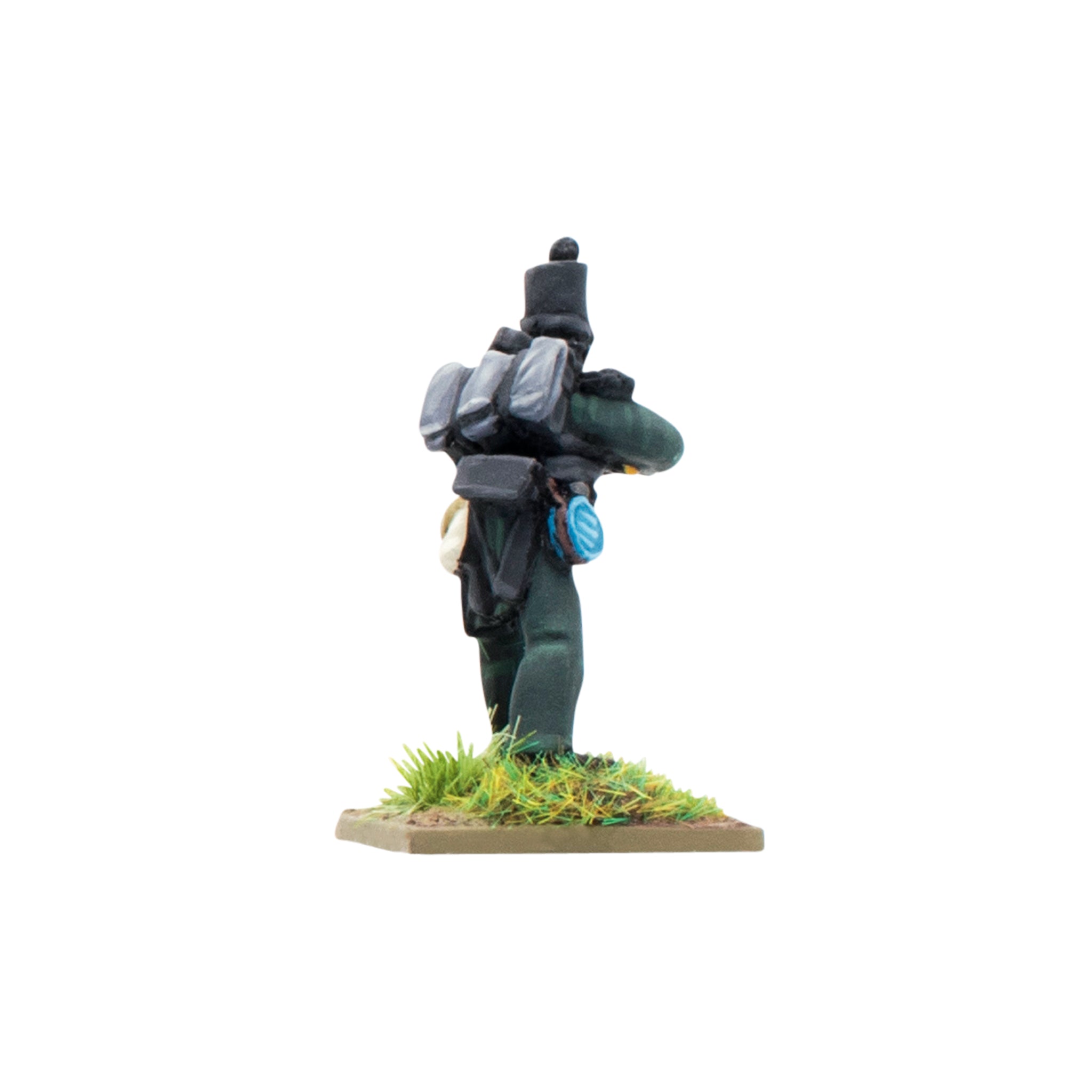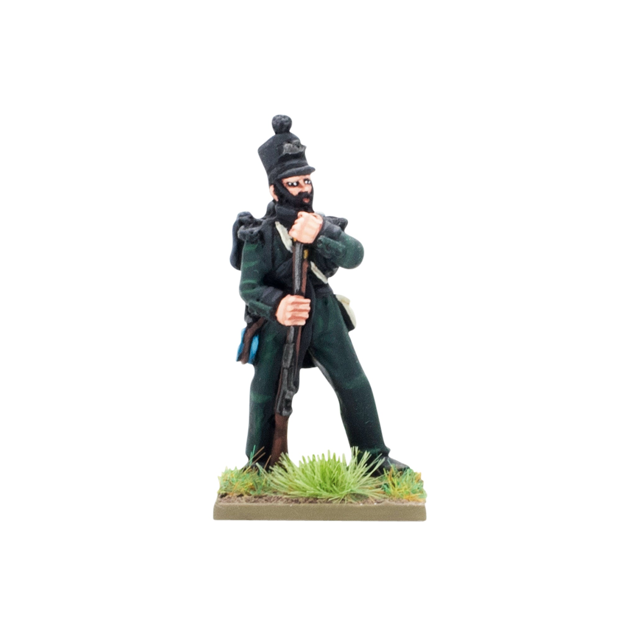 The Rifle Brigade began the campaign wearing the traditional shako, before later transitioning to the soft forage cap.