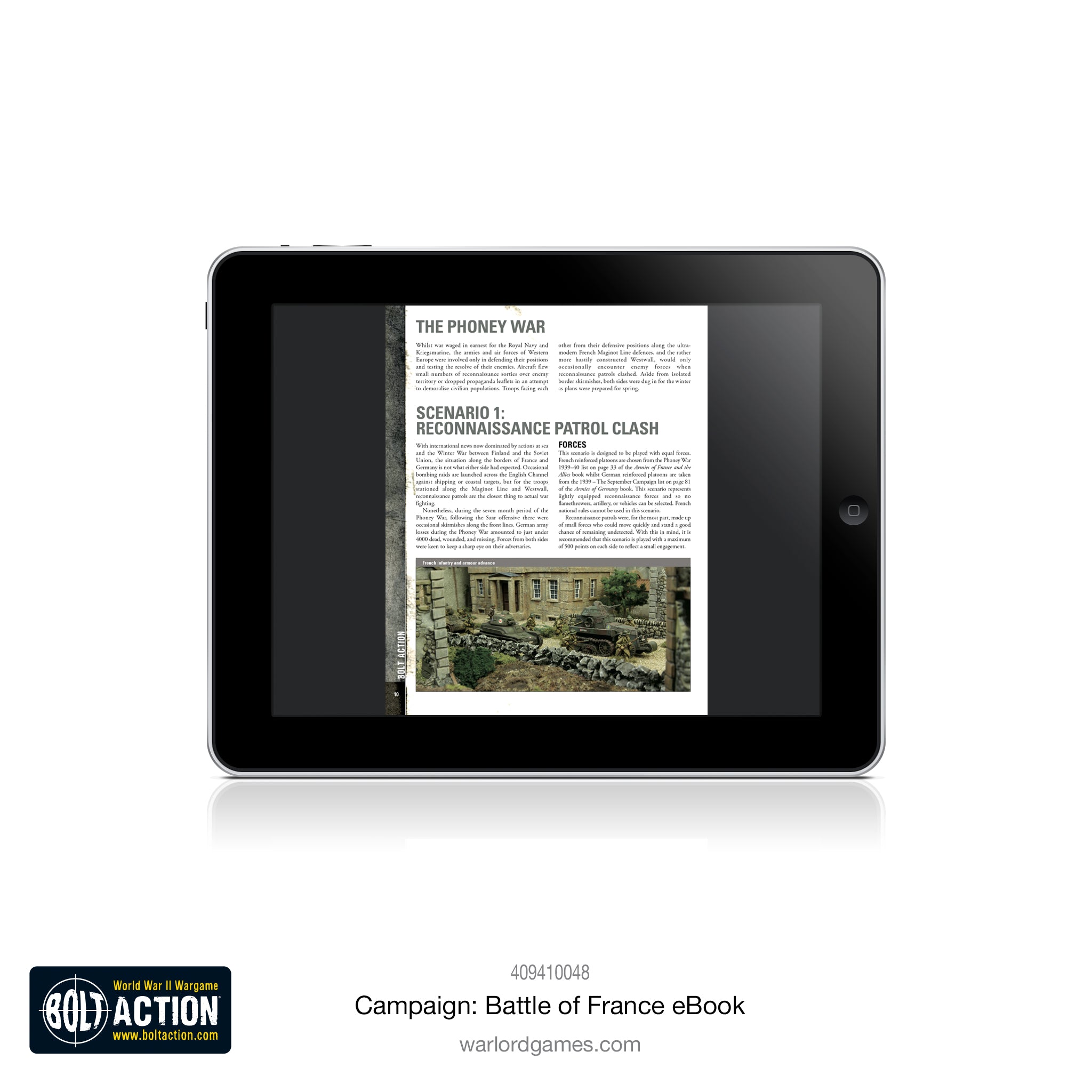 The Battle of France saw German forces sweep across the Low Countries and towards Paris, crushing Allied resistance in just six weeks. From Fall Gelb and the British withdrawal from Dunkirk to the decisive Fall Rot, this new supplement for Bolt Action allows players to take command of the bitter fighting for France, and to refight the key battles of this campaign. Linked scenarios and new rules, troop types, and Theatre Selectors offer plenty of options for novice and veteran players alike.