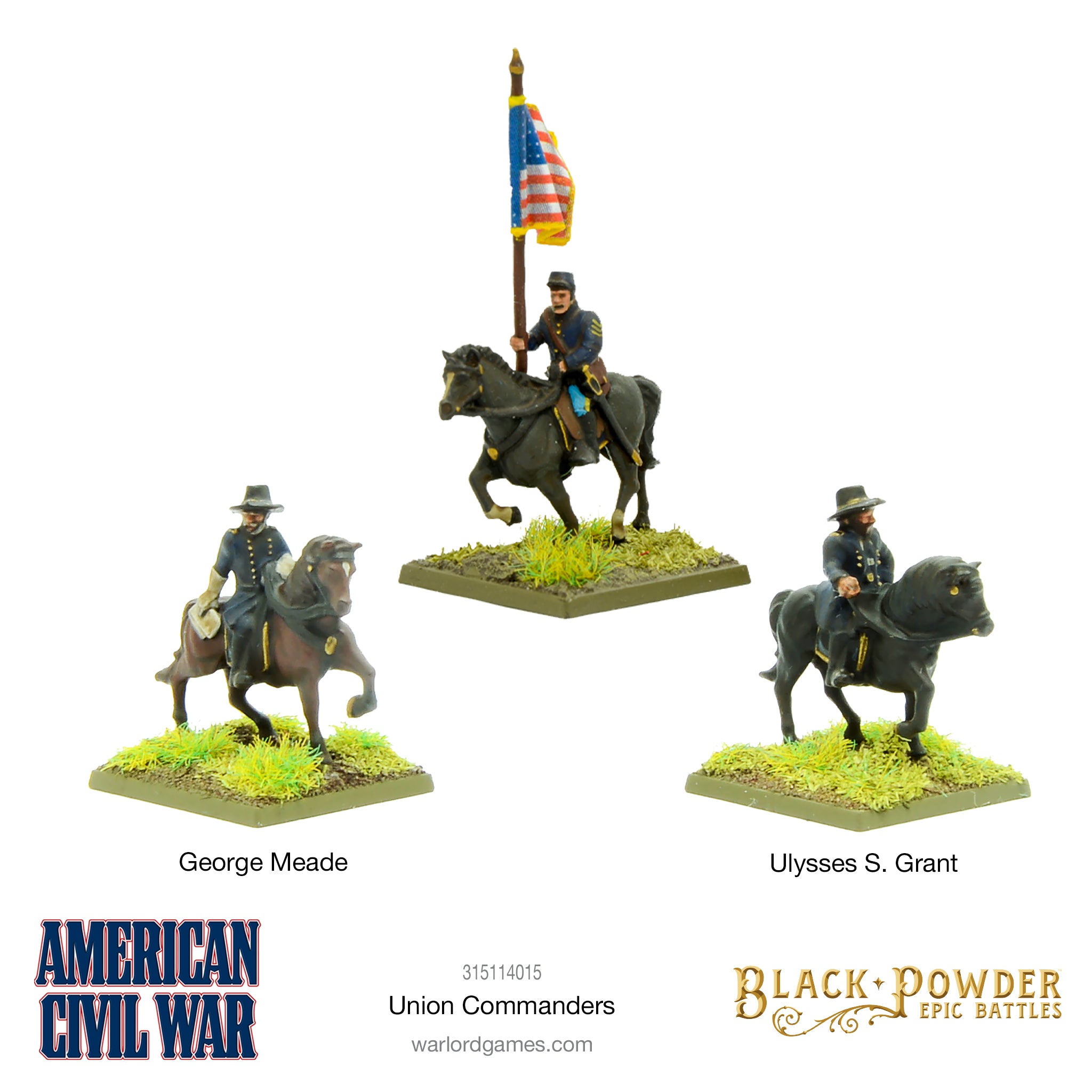 This pack contains 3 mounted command figures in metal.