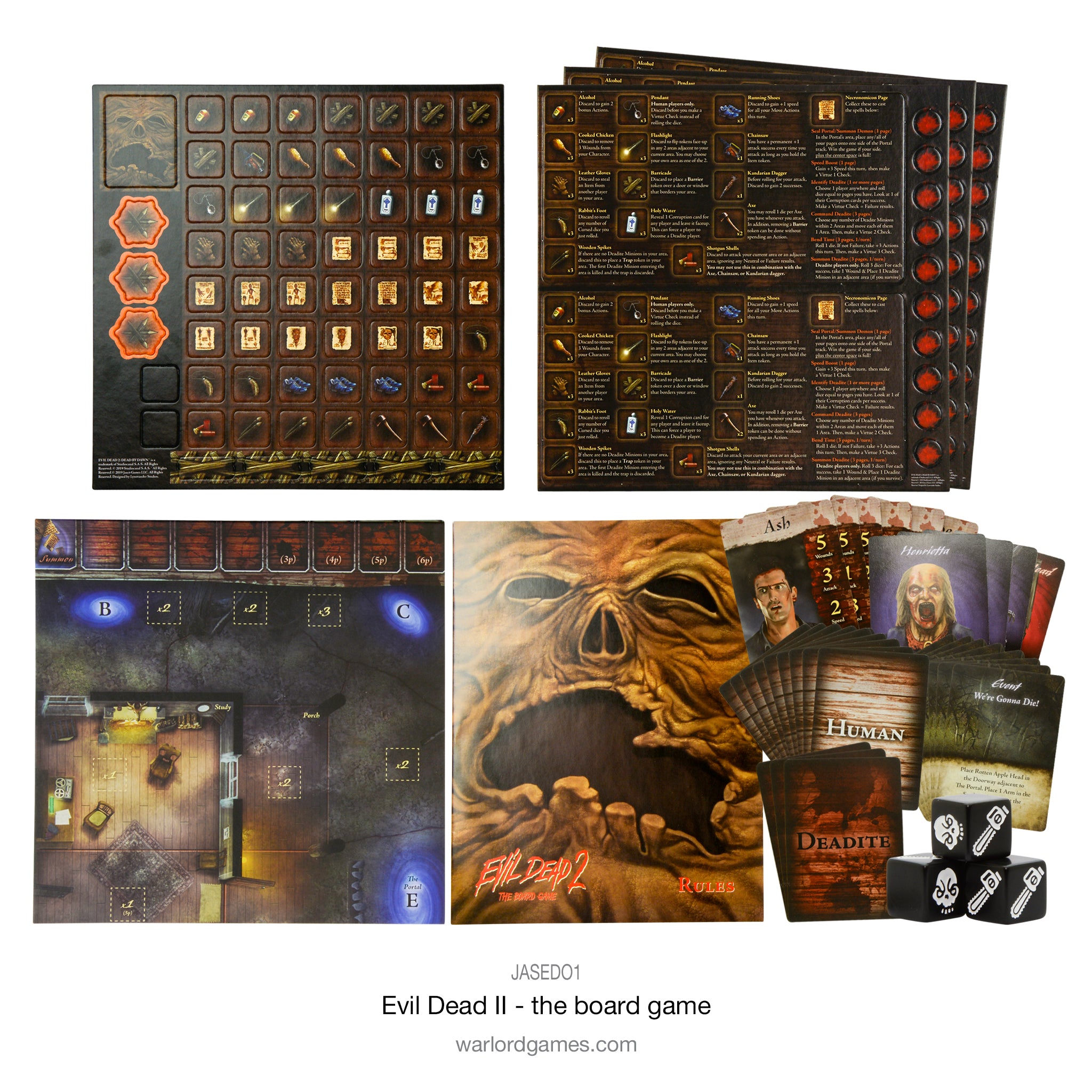 Evil Dead 2 The Board Game is a wild romp through the cult classic film. Players will fend off Deadites, search the cabin for items and Necronomicon pages, and attempt to close the portal before evil is unleashed upon the world. But beware! You can’t trust everyone, and at a moment’s notice you might find that your allies are working for evil!