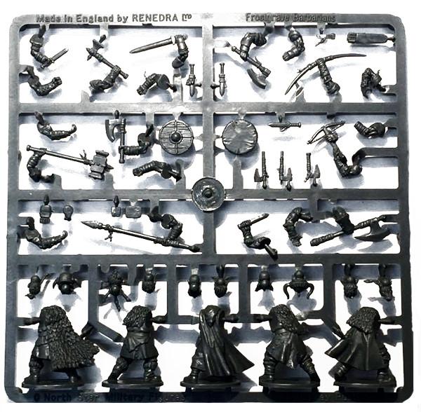 This box set of hard plastic figures gives you four of these sprues which allows you to build 20 different Barbarians to play in the game Frostgrave. To help you design the perfect Barbarian warband, the box set contains 20 bodies, loads of weapon/ arm variants, 40 heads and all sorts of Barbaric equipment. No two warbands should ever be the same!