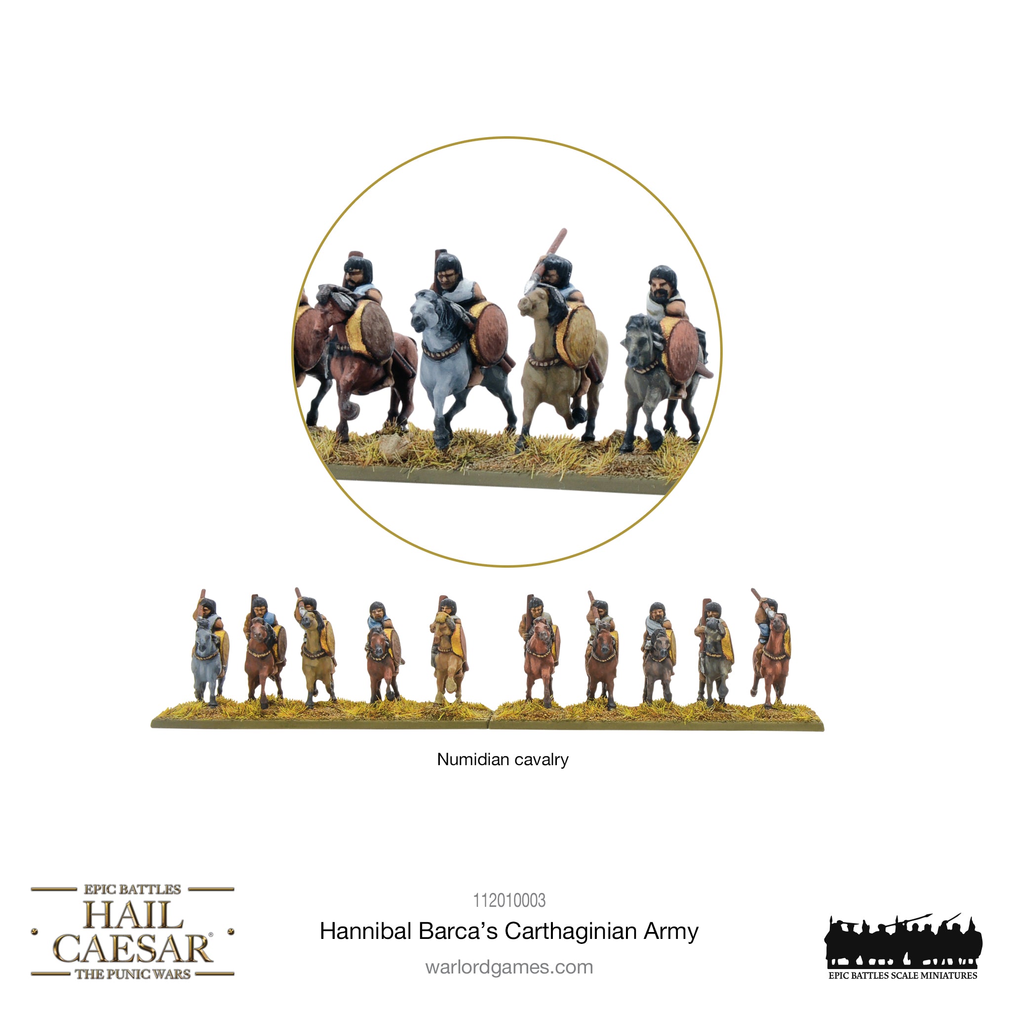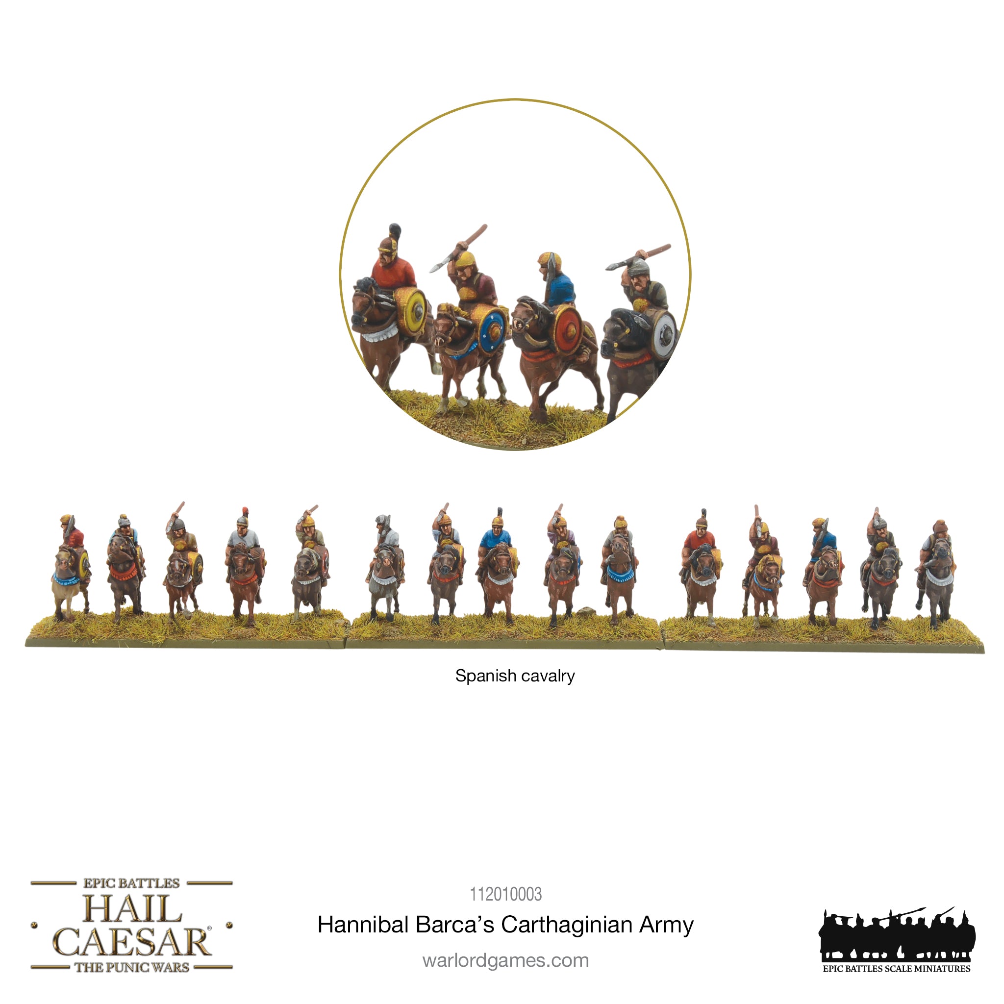 In the third century BC, the rising power of Rome would clash with its most deadly adversary in the form of the rival Carthaginian empire, whose territories stretched across northern Africa and onto the Iberian Peninsula. Chief amongst the Carthaginians was the nobleman Hannibal Barca, a general who would win a string of spectacular victories over the Romans and lead his forces (including war elephants!) on an audacious march across the Alps that would carve his name into legend. There’s no better choice to lead your Carthaginians than he, and so you’ll also find a gorgeous Warlord Resin Hannibal Barca in this boxed set!
