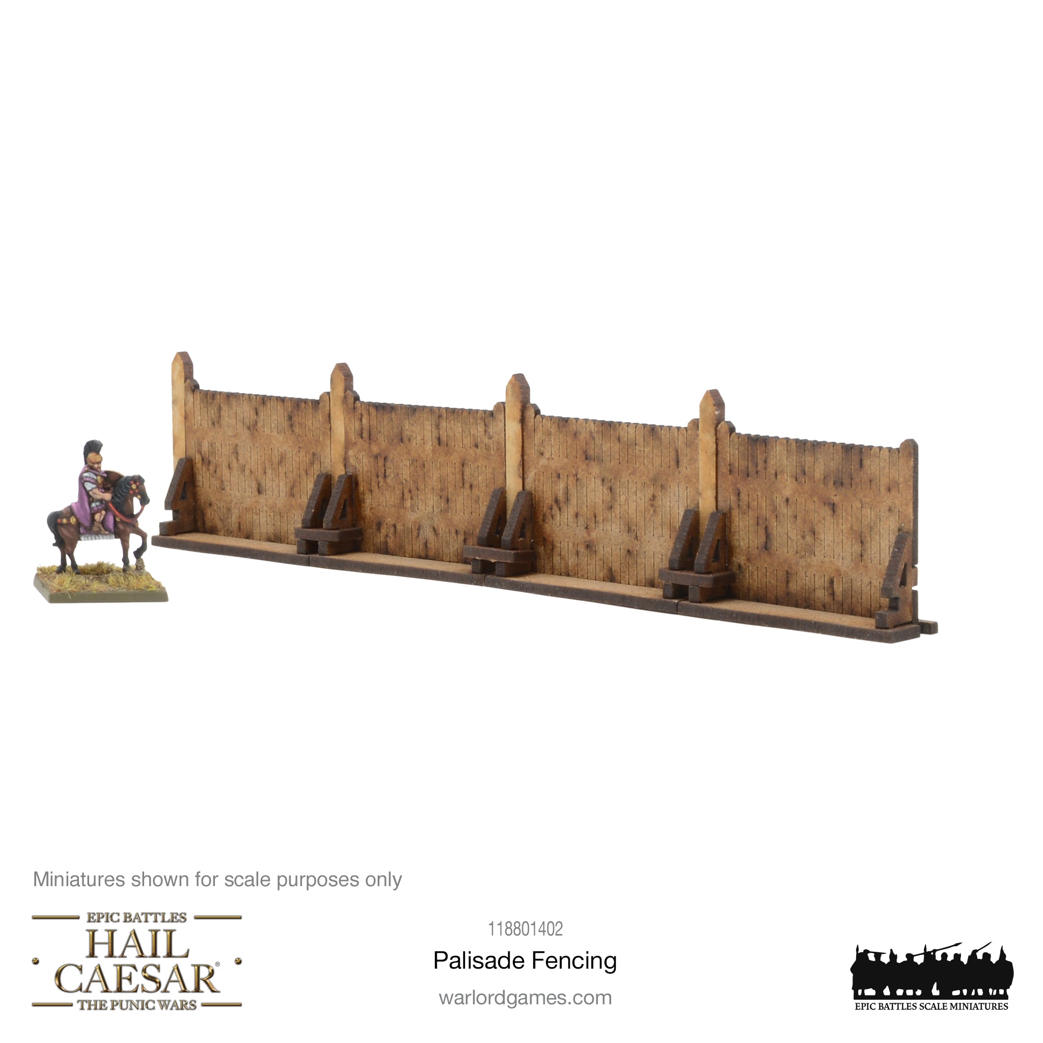 This pack contains four palisade fencing sections, to be used as extensions to expand and enlarge your Roman Marching Fort, or as table dressing in their own right. Each piece clips together with MDF clips, making storage and transport a doddle, and allowing you to perfectly tailor the length of your fencing to your tabletop or tactical requirements! What Hail Caesar Epic Battles army would be complete without some palisade fencing to augment their defences?