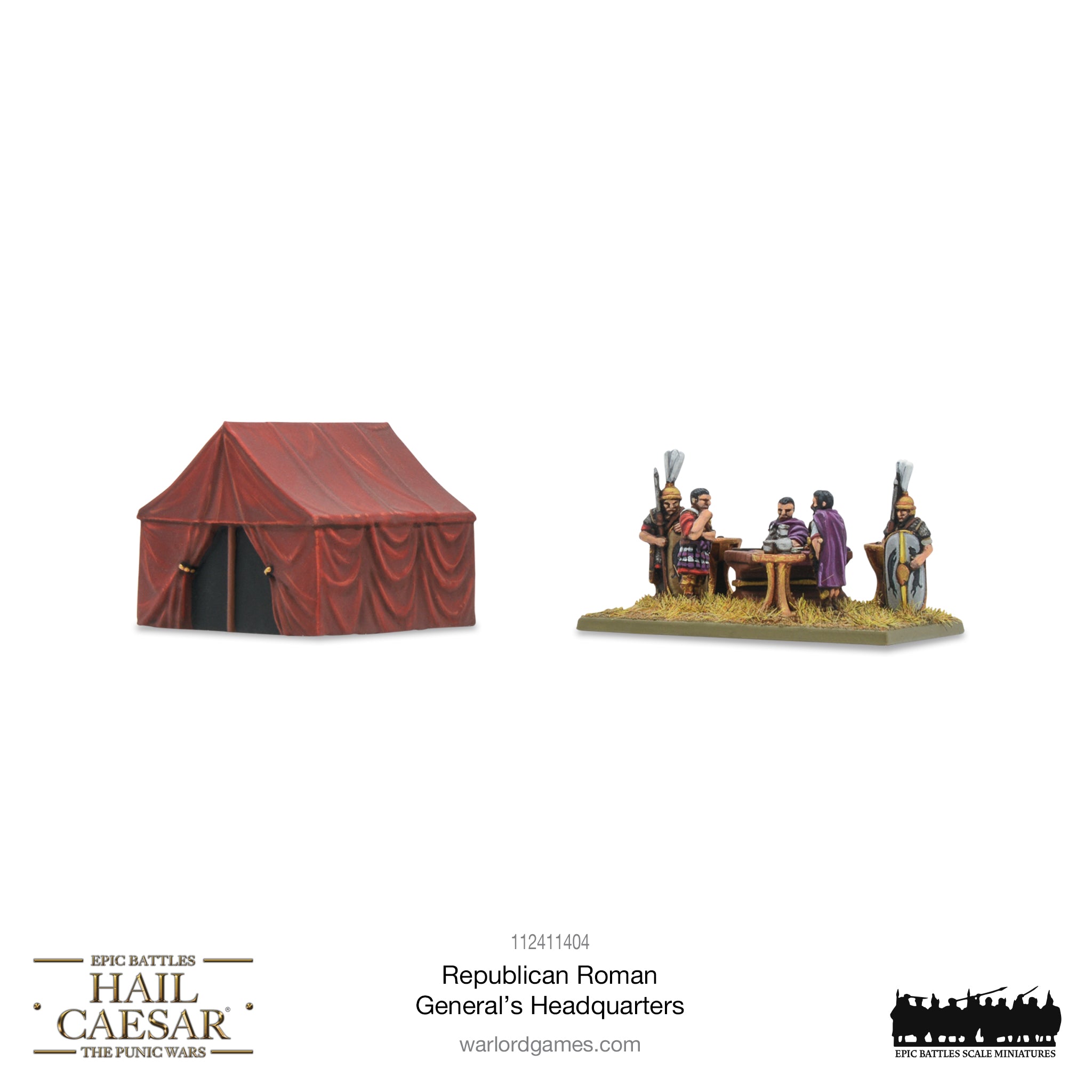 Providing one properly grand tent and a group of officers pondering their next move, the Roman General’s Headquarters is a great addition to any Roman Hail Caesar Epic Battles collection, whether as ‘table-dressing’ or as a representation of commanders just behind the battle-lines!