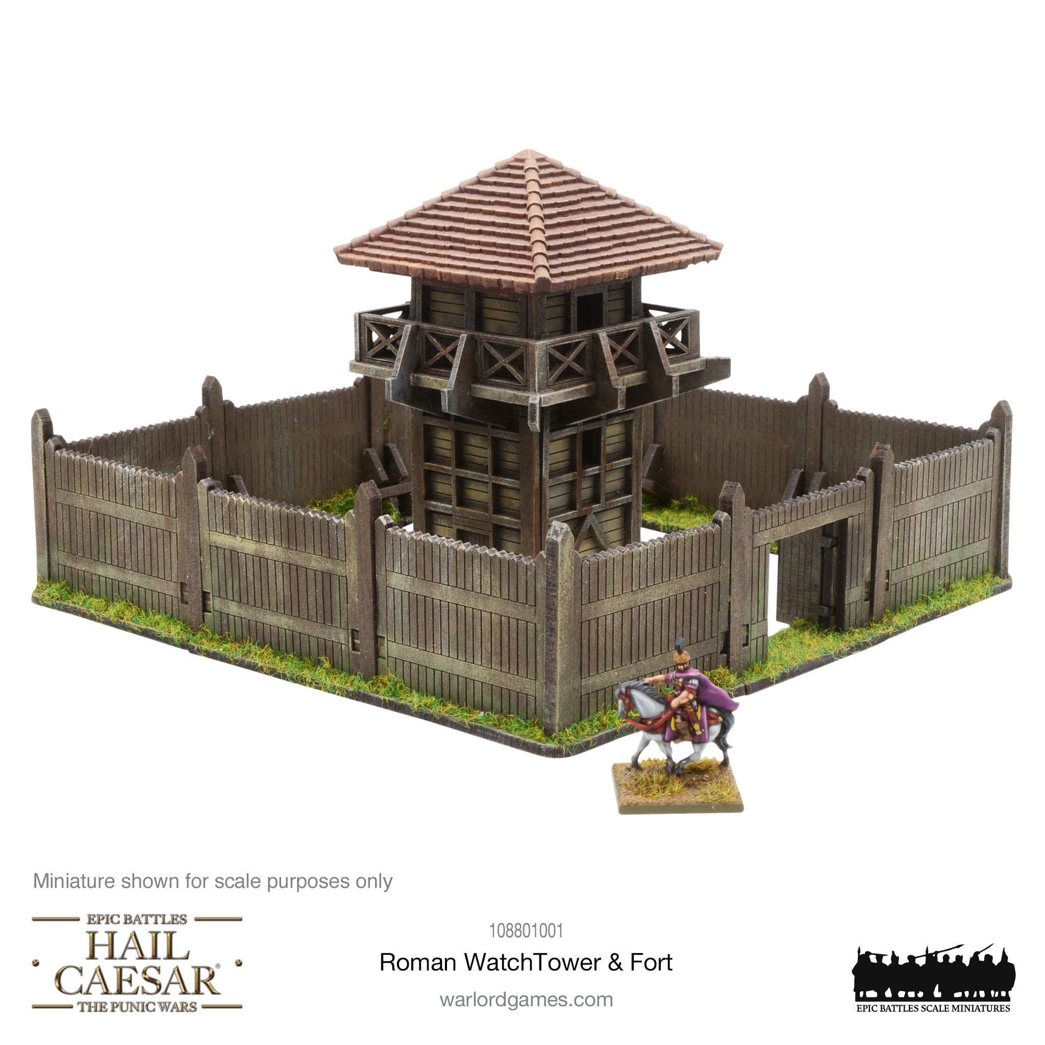 Pack contains one MDF Roman Watchtower and palisade fencing. The Watchtower roof is resin.