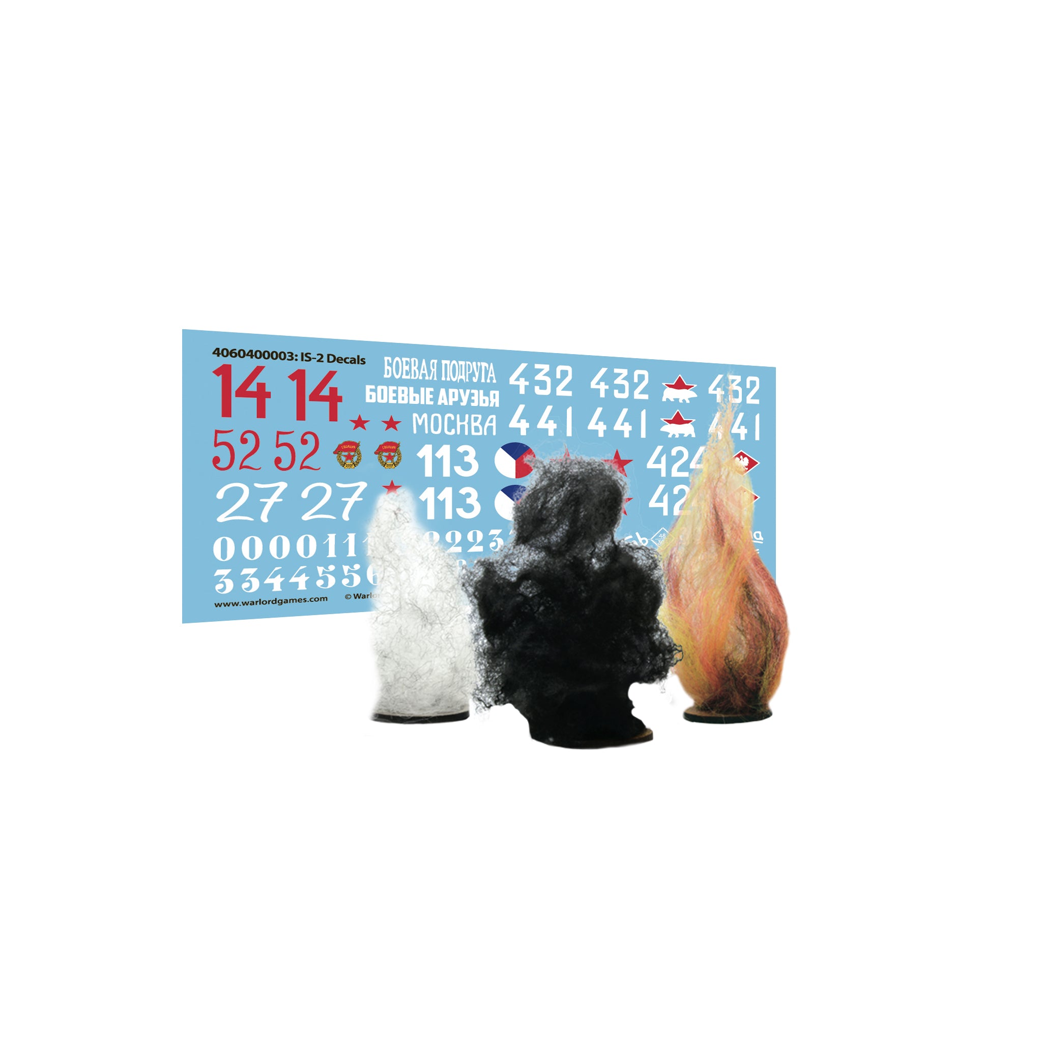 Box contains one plastic IS-2 Heavy Tank, a sprue of Soviet Infantry (6 men), decal sheet, and vehicle damage markers.