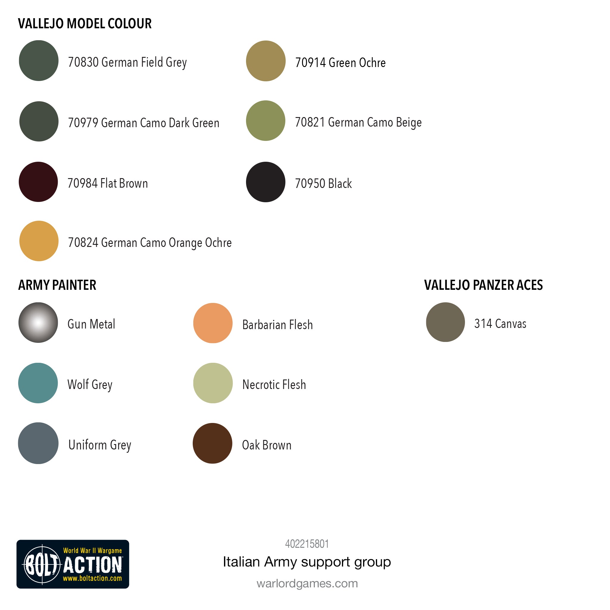 Contains the following metal miniatures which can be fielded as Italian Army or Blackshirt troops: