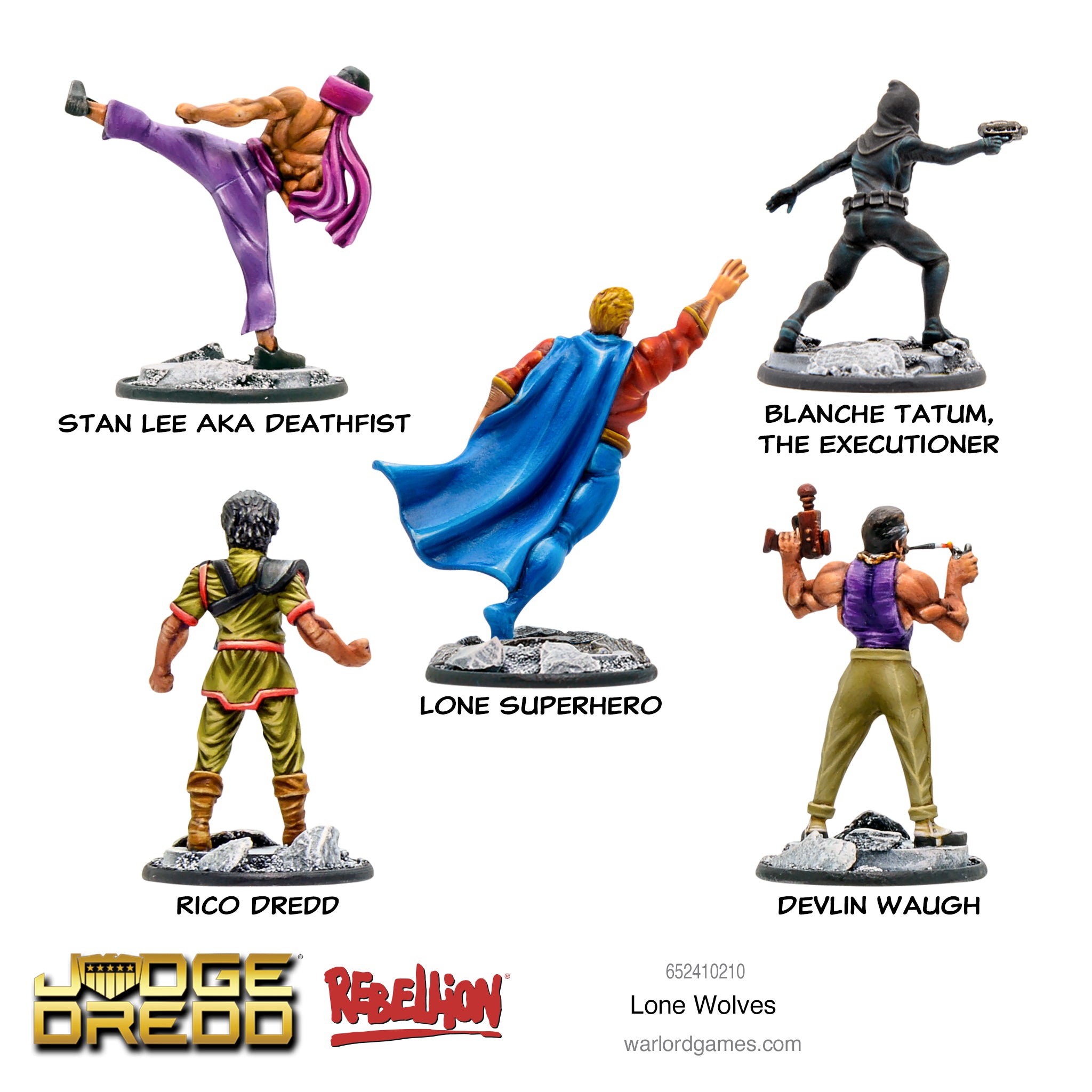 Martial arts master Stan Lee (AKA Deathfist) is one of a few who have bested Judge Dredd in close combat. Former rookie Judge Blanche Tatum (AKA The Executioner) is sworn to kill her husband’s murderers. Corrupt Judge Rico was arrested by his clone brother, Joe Dredd, and sent to Titan’s penal colony. Devlin Waugh, athlete, bon vivant and vampire, possesses a deep knowledge of matters paranormal. Some eccentric citizens don caped outfits and pledge to defend the city with their ‘superpowers’.