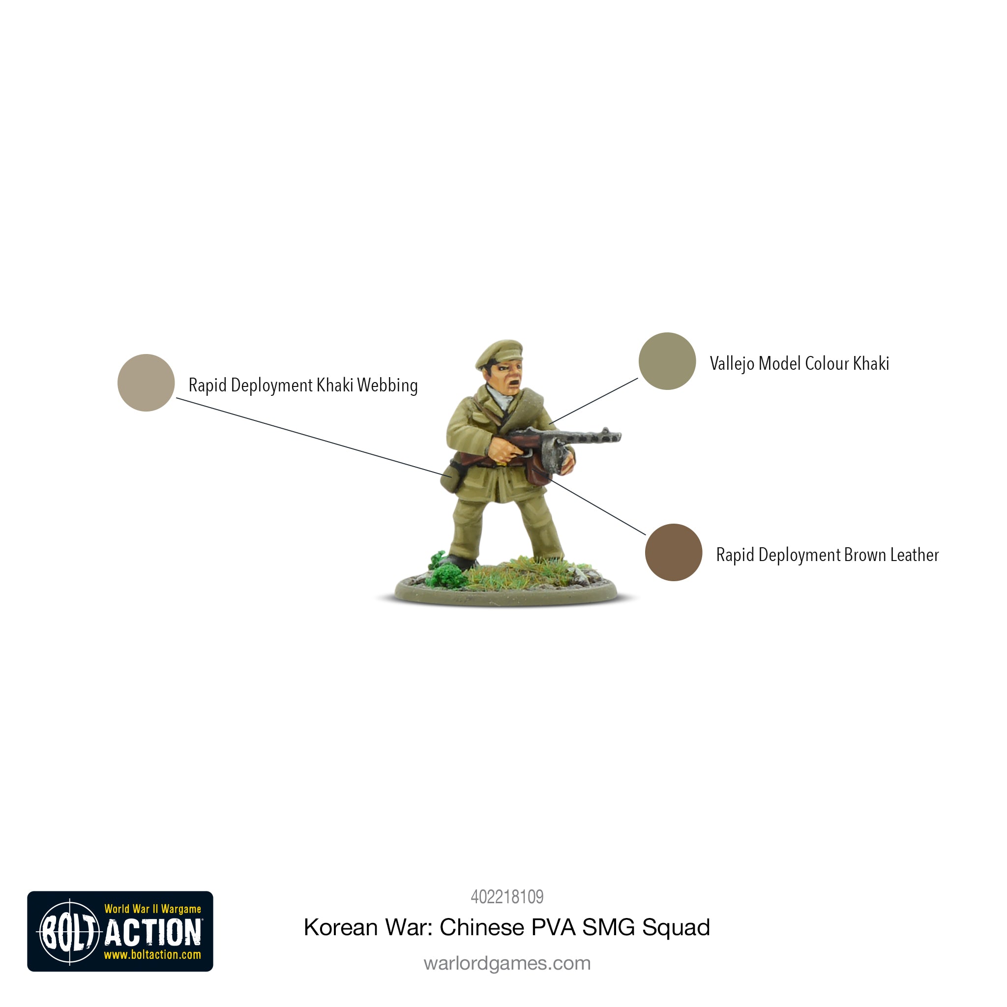 Much like their Soviet counterparts, the CCP Army learned the valued lessons of massed assaults with submachine guns. In a PVA rifle company, two submachine squads were in the company headquarters, providing firepower when needed. These submachine gun squads served as scouts, point security, lead in the attack, and could also be divided out if the commander needed. A mix of weapons were issued, the standard PPSh and the US Thompson submachine gun from WWII.