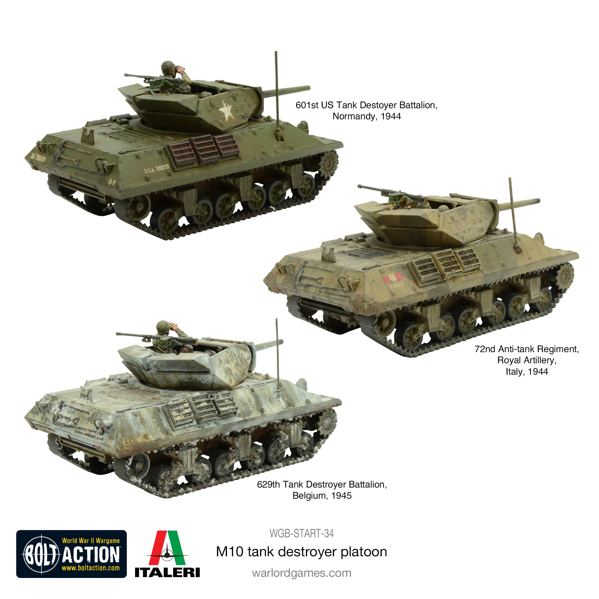 Set contains 3 x M10 Tank Destroyers (plastic)