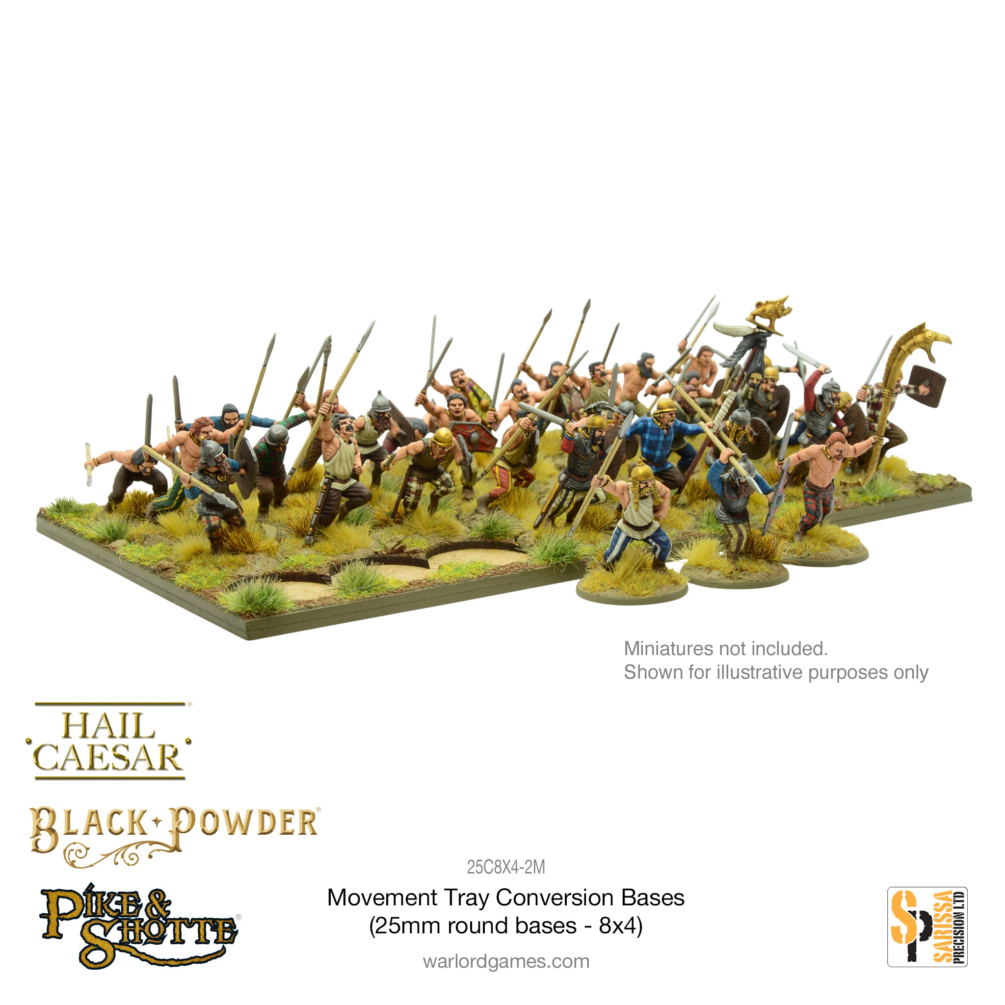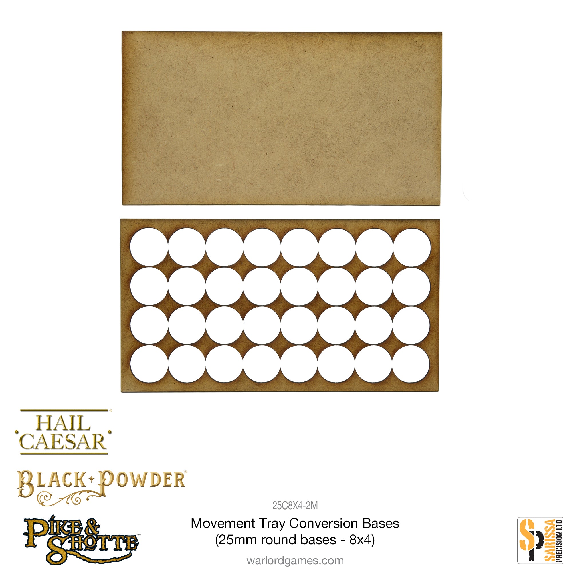 One laser-cut MDF conversion tray consisting of MDF upper frame and lower base to hold 25mm diameter round bases. These trays allow you to use your round-based models in a ranked fashion.