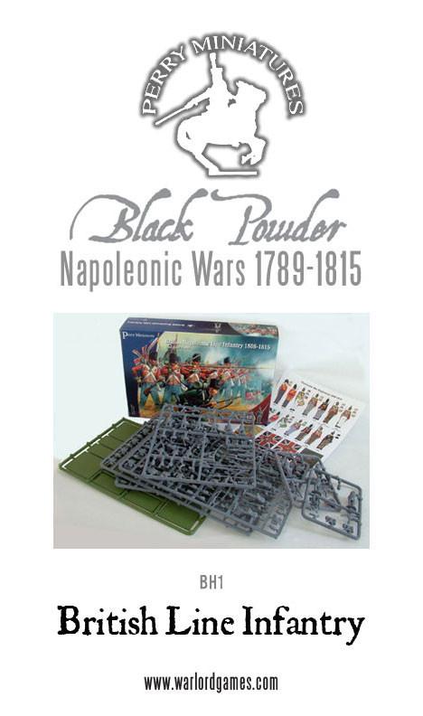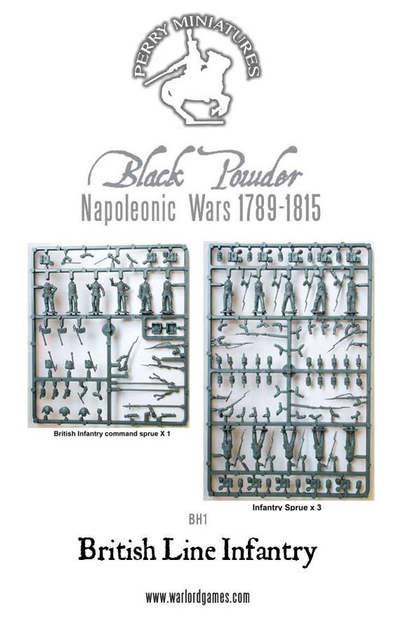 The figures in this box represent a regiment of British Line Infantry in a firing line and a Company of Riflemen skirmishing. Included in the box are a Line regimental command, centreand flank companies and parts to allow you to build a unit from either the Peninsular War (1807-14) or the Waterloo Campaign (1815).