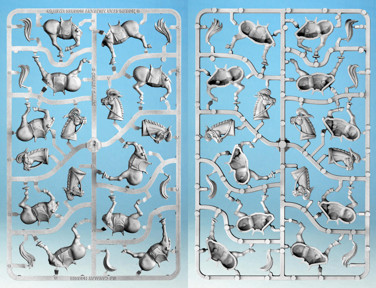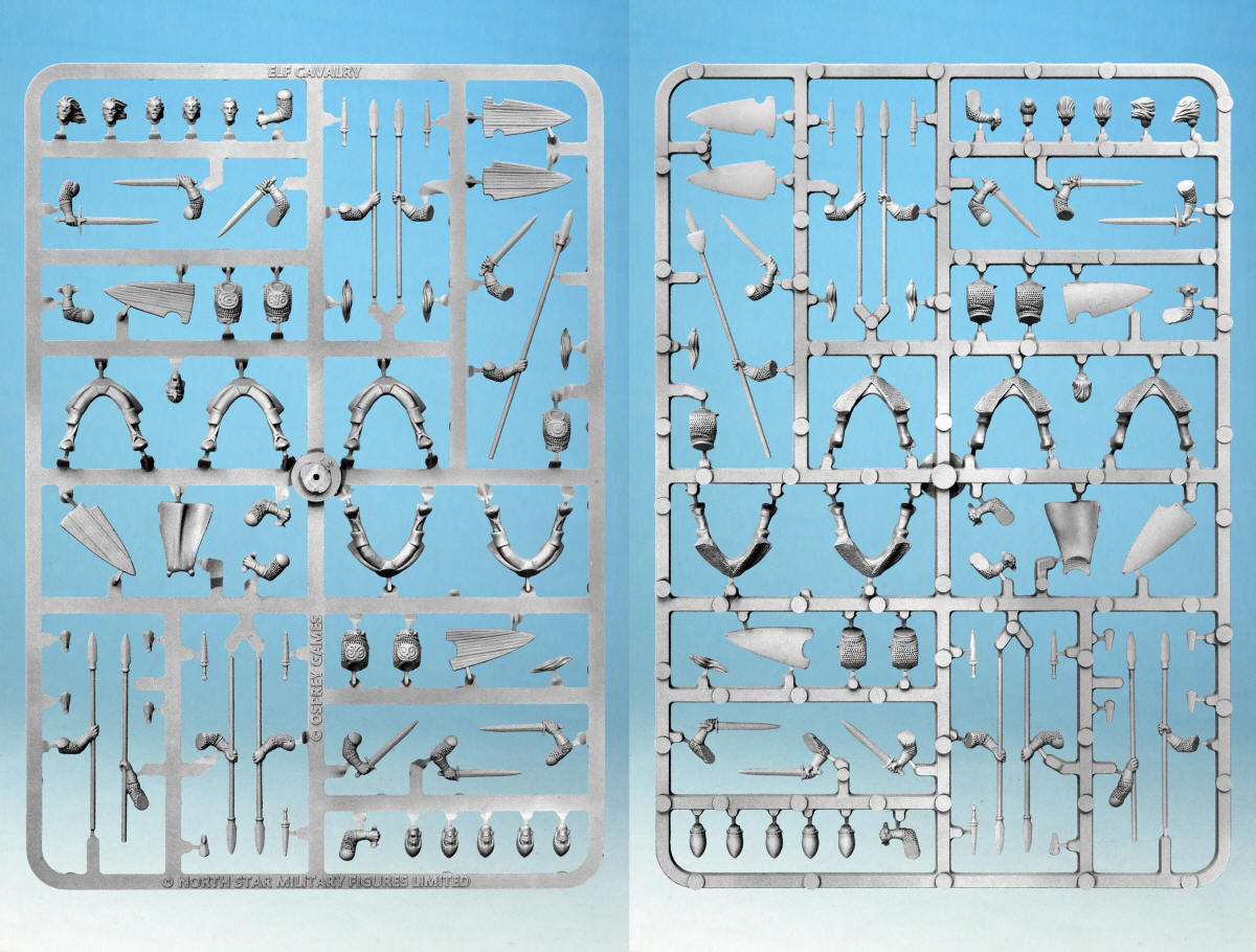 This box set contains enough parts for you to build 15 Elf Cavalry figures. We provide you with enough weapon options to make them all spearmen, all hand weapon and shield or any combination of the two. Each frame also contains a standard bearer and officer option. So you could have a giant unit of 15 Cavalry with an officer and standard bearer, or three units of 5 Cavalry with mixed weapons and a standard/ officer each!