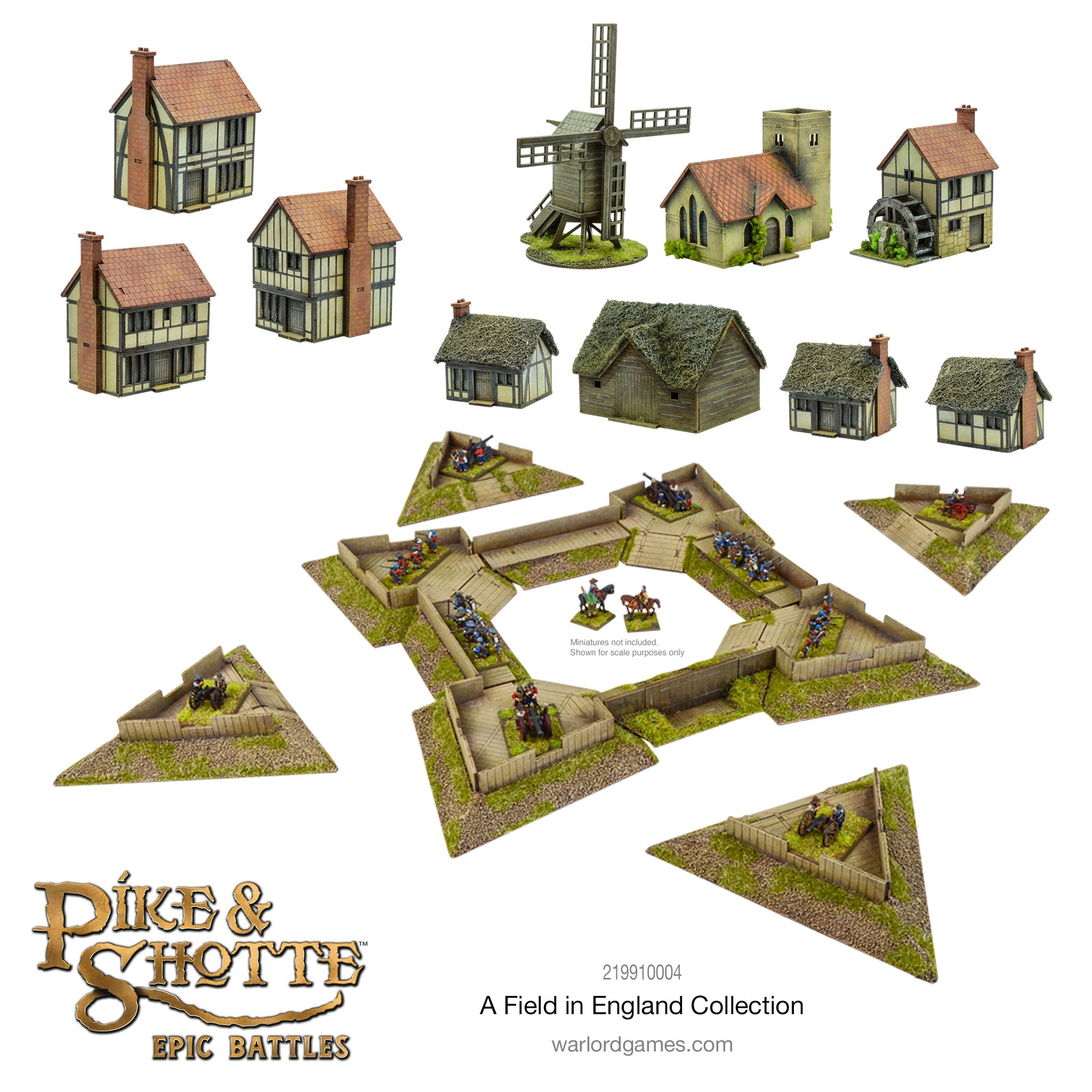 The A Field In England Collection is all about the scenery, containing four Pike & Shotte Epic Battles MDF scenery kits. When built, you’ll have the following buildings with which to dress your tabletop: