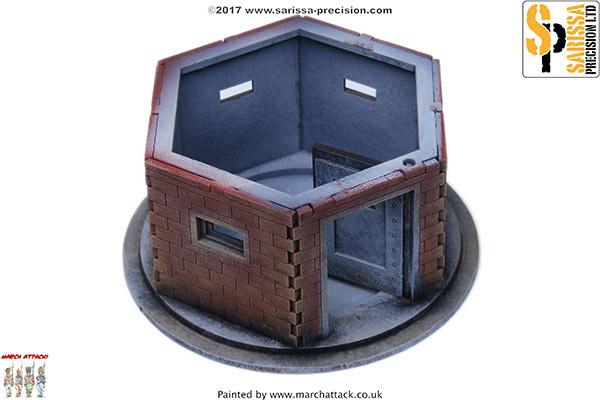 A Set of three (3) small Pill Boxes (1x Brick, 2x Concrete) with working door, removable roof and room for a 60mm base (plus a bit more)