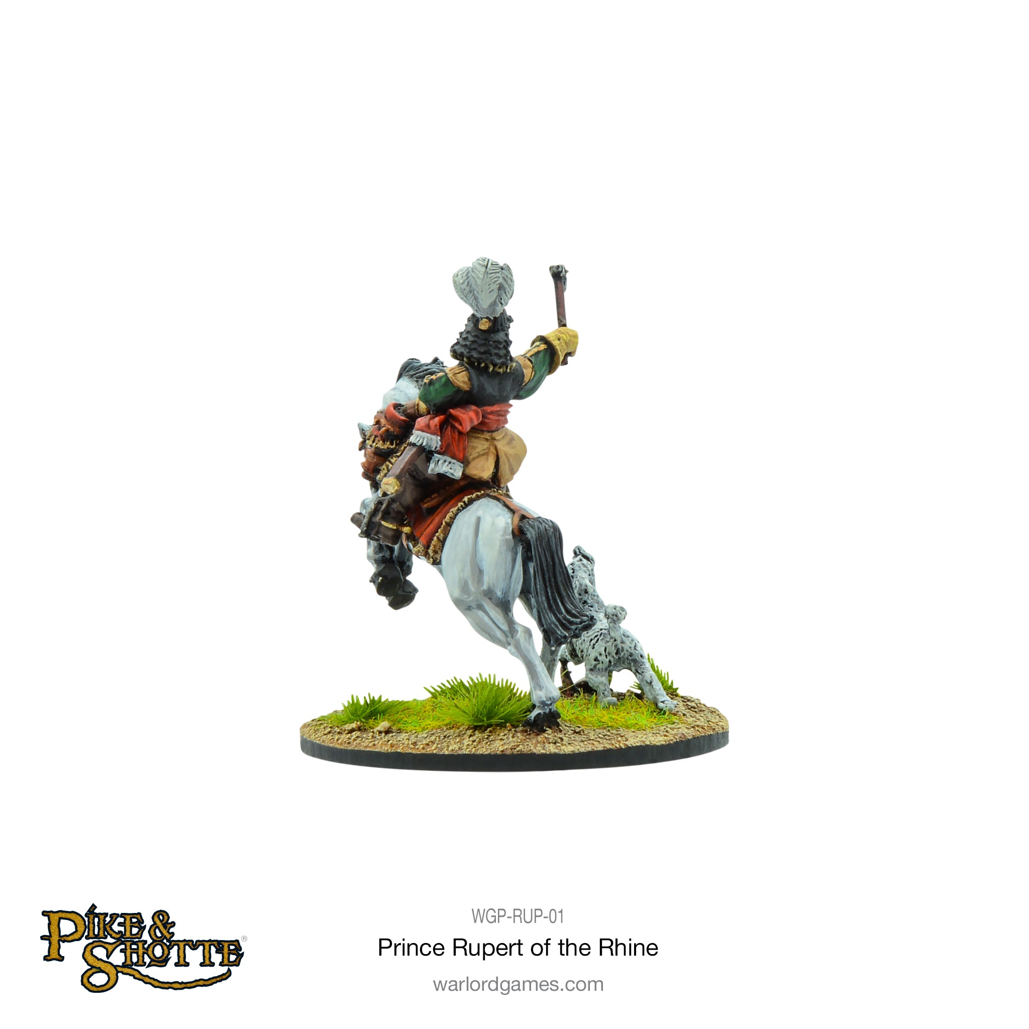 This fantastic sculpt of Prince Rupert shows him leading his cavalrymen into the charge along with his fearsome dog Boye.