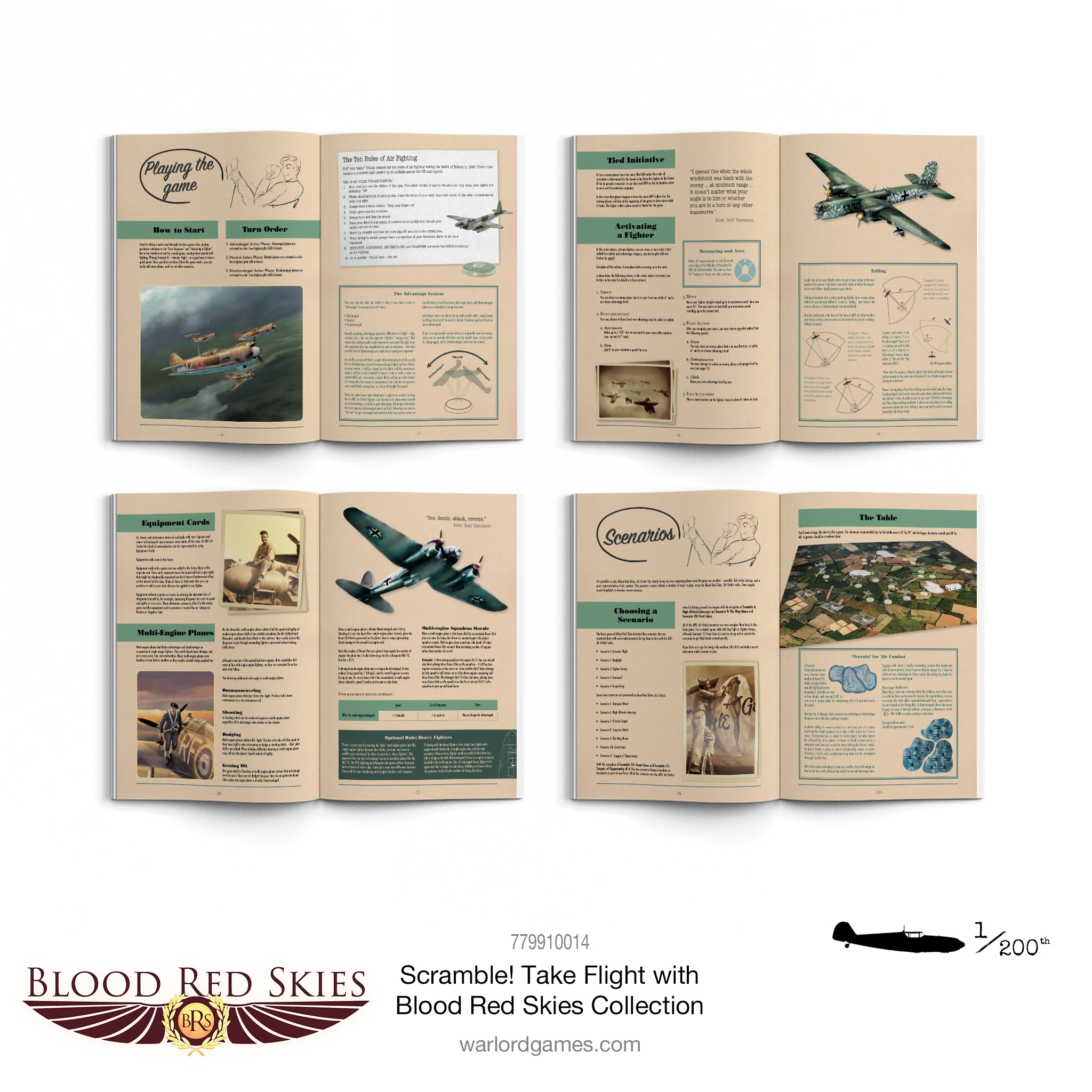 Get started with Blood Red Skies and get up to speed with everything the game has to offer (so far) with the Scramble! Collection. In addition to the Battle of Midway starter set, this collection arms you with the full Blood Red Skies expanded rules via two compendiums, the Ops Room Card Deck, and take your dogfights into the jet age with the newly revised MiG Alley!