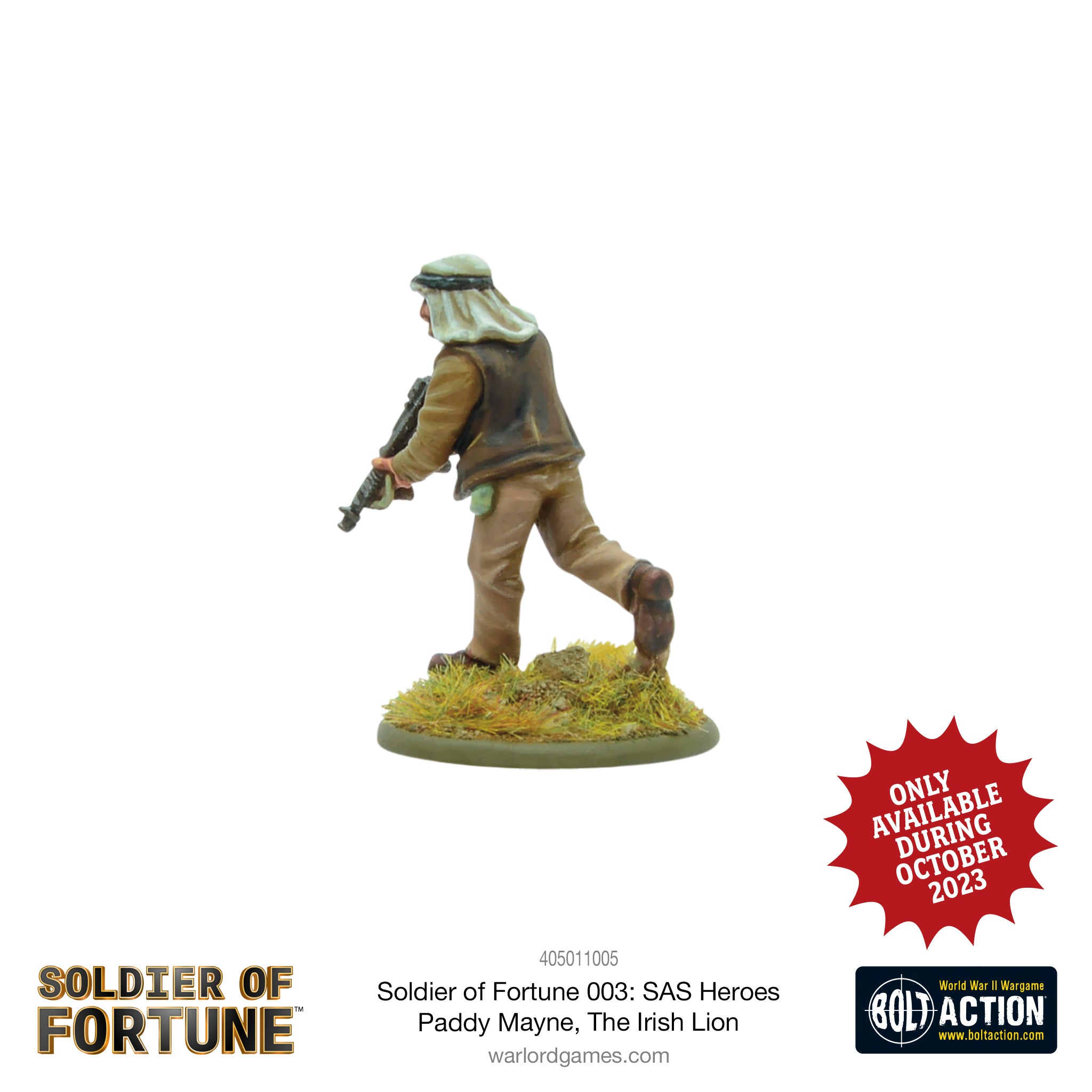 Soldier of Fortune 003 is a brand-new Paddy Mayne figure, which depicts the Irish Lion battle-ready, with native headwear to combat the harshness of the desert, and Thompson SMG to sow chaos and destruction amongst the next Axis airfield.