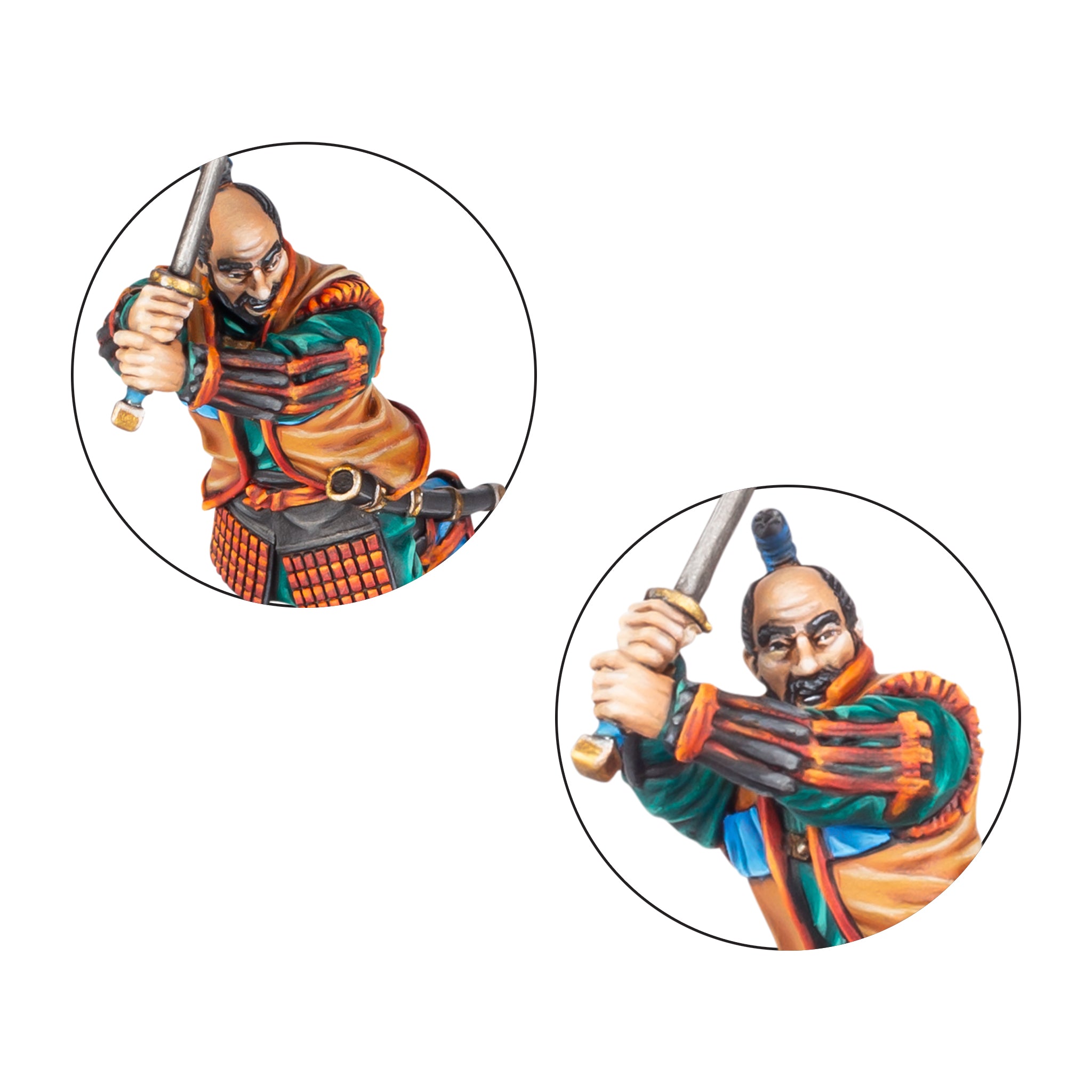 Hideyoshi left an enormous social impact on Japan, solidifying a caste system that endured for centuries, banning slavery, conducting enormous restoration and renovation projects, and largely balancing out the power of individual daimyo nobles. This awesome Warlord Resin figure depicts him in his dynamic, warlike aspect, springing into battle with sword raised. Packed with detail and motion, it’s an amazing opportunity for painters to really show off their skills, and makes for a perfect commander for any Pike & Shotte Japanese force.