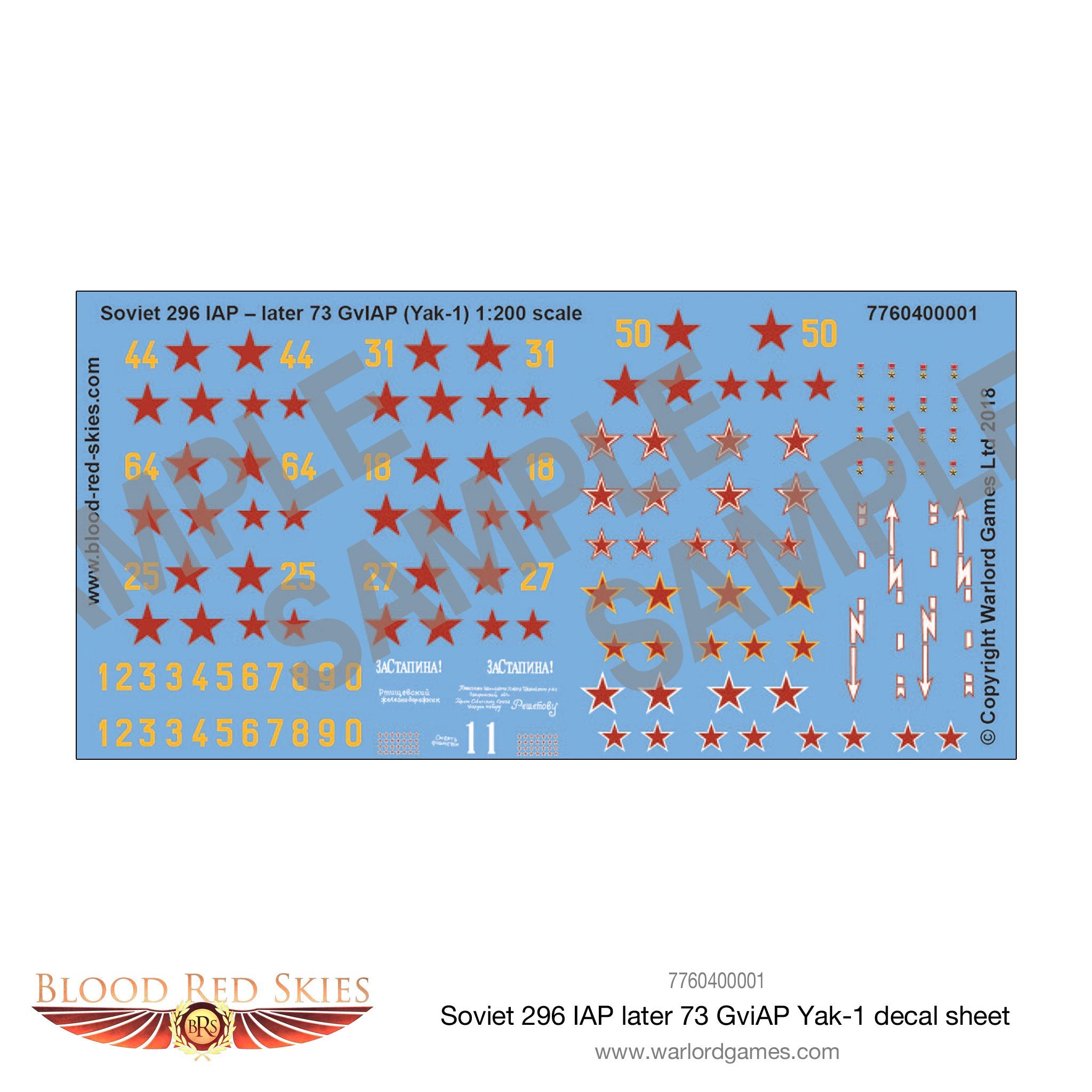 This waterslide decal sheet contains markings to decorate 6 planes in the markings of the Soviet 296 IAP and the Ace pilot Lydia Litvyak. The sheet also includes spare red stars with white outline for late war.