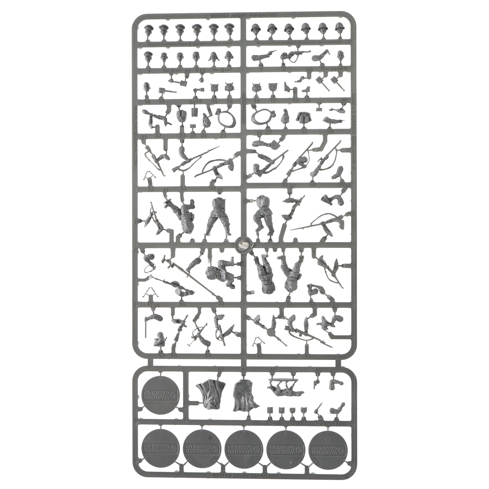 This box contains 30 infantry models in ‘summer’ uniforms, allowing you to build a huge variety of Soviet units. On each sprue, you’ll find a wide range of weaponry, including Mosin-Nagant rifles and carbines, DPM light machine guns, a PRTD anti-tank rifle, and of course lots of submachine guns, just to name a few. There’s also a captured German Panzerfaust, a scoped sniper’s rifle, and plenty of extra pieces such as megaphones, camouflage capes, and even a ‘liberated’ chicken to allow you to build even more units from this kit, and add character to your force. We’ve even included a dog, for all of your canine needs! A full set of heads in helmets and another in NKVD caps gives you yet more options - this kit really can do it all!