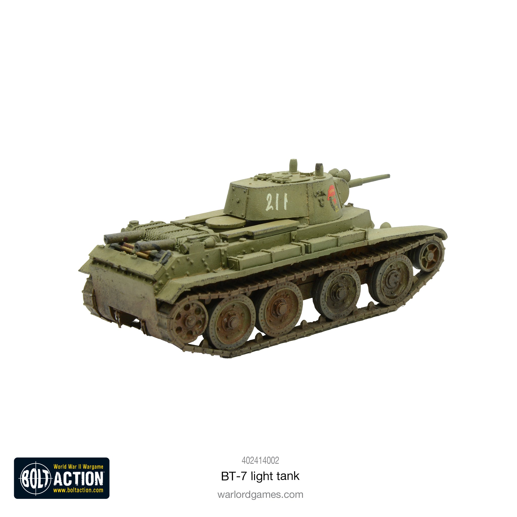 The Soviet army of World War II was not short of fast cavalry tanks. The BT-7 was built in the thousands and used in early battles against the Japanese and later the invading Germans. Capable of an impressive 44mph on roads and over 30mph across country, it weighed in at over thirteen tonnes and used its speed for protection rather than it's light 20mm thick armour. The BT-7 had a crew of three – the driver, loader, and commander, who also served as the gunner, were kept busy serving a 45mm main gun and co-axial machine gun. The tank was fairly crude in keeping with many Soviet war machines, and losses were high – over 2,000 were destroyed or abandoned in the first year on the Eastern Front. However, as with most things produced by the Soviets, they were to be fielded in massive quantities – over 5,000 were produced, being used by the Red Army for almost the entire war. Quantity has a quality all of its own!